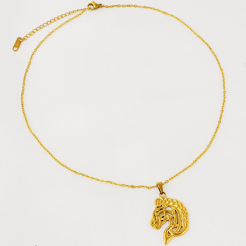 Collar de Acero Inoxidable, acero inoxidable 304, con 5CM extender cadena, Caballo, chapado, para mujer, más colores para la opción, longitud:40 cm, Vendido por UD