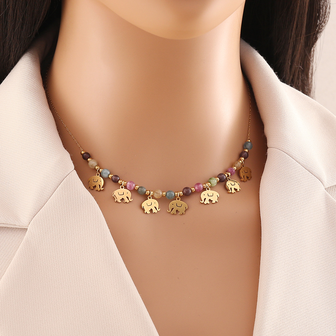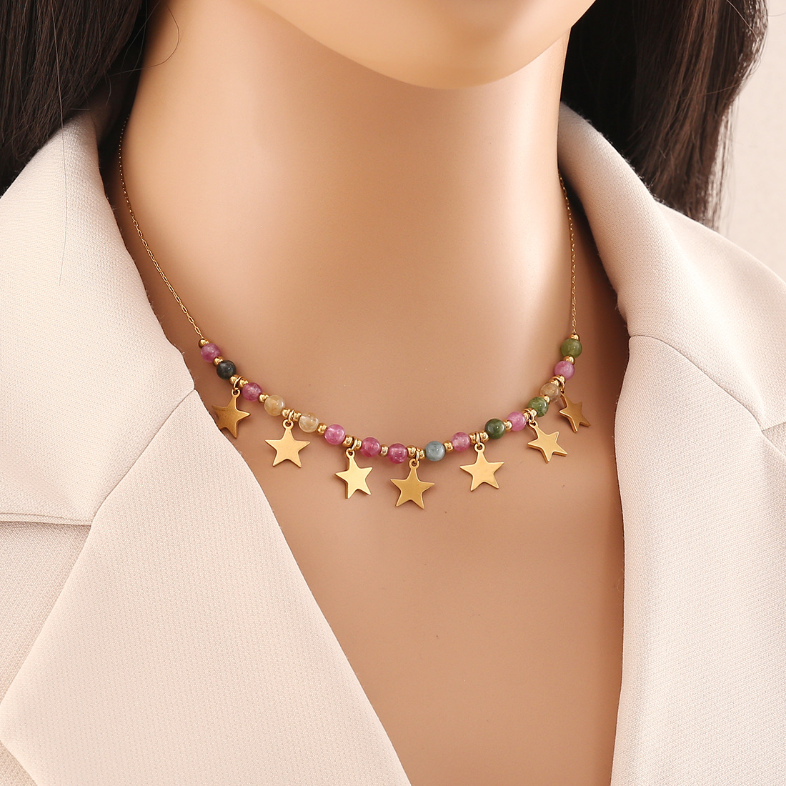 Collar de Acero Inoxidable, acero inoxidable 304, con Piedra preciosa sintética, con 5cm extender cadena, hecho a mano, Joyería & diferentes estilos para la opción & para mujer, dorado, longitud:40 cm, Vendido por UD