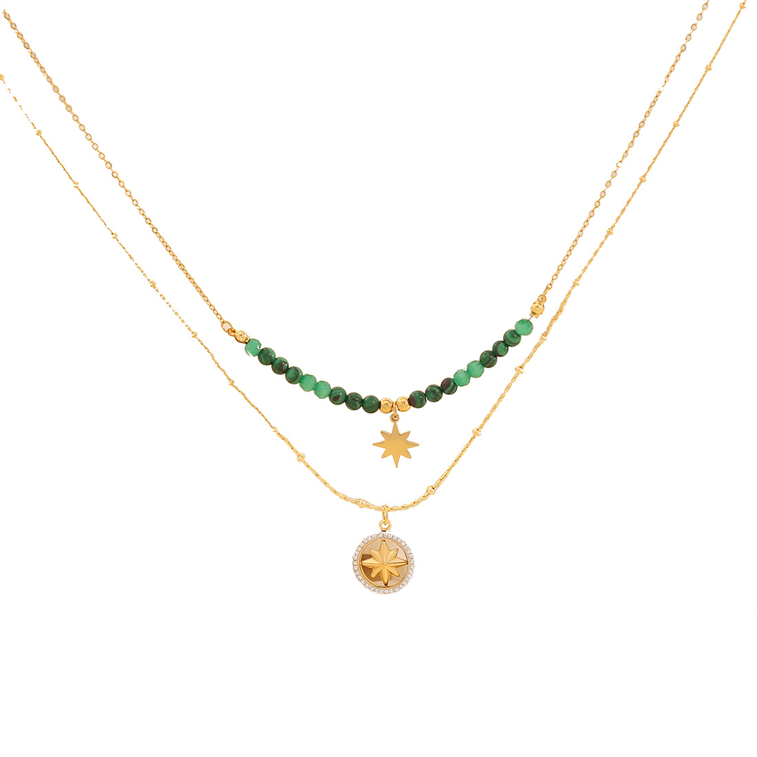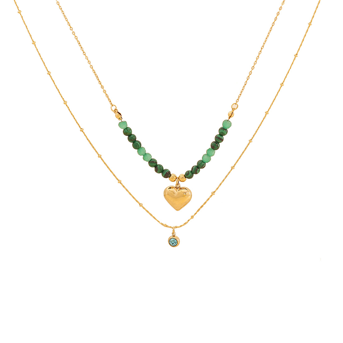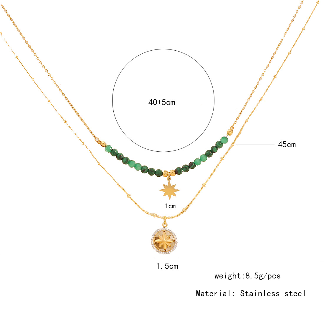 Collar de Acero Inoxidable, acero inoxidable 304, con Piedra preciosa sintética, con 5cm extender cadena, hecho a mano, Doble capa & diferentes estilos para la opción & para mujer, dorado, longitud:40 cm, Vendido por UD