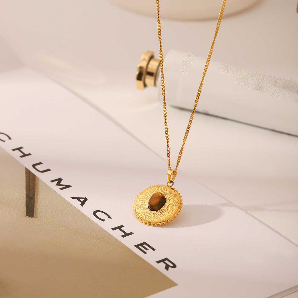 Collar de Acero Inoxidable, acero inoxidable 304, con Ojo de tigre, con 5cm extender cadena, chapado, Joyería & para mujer, dorado, longitud:41 cm, Vendido por UD