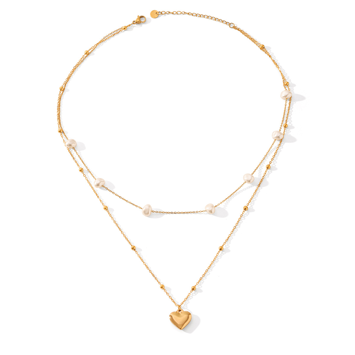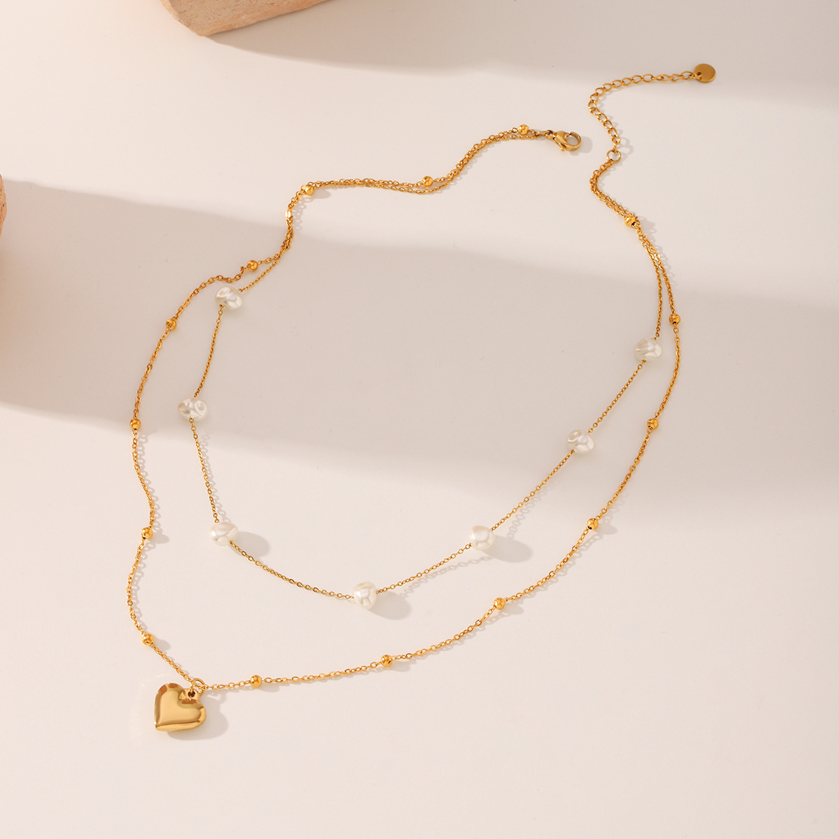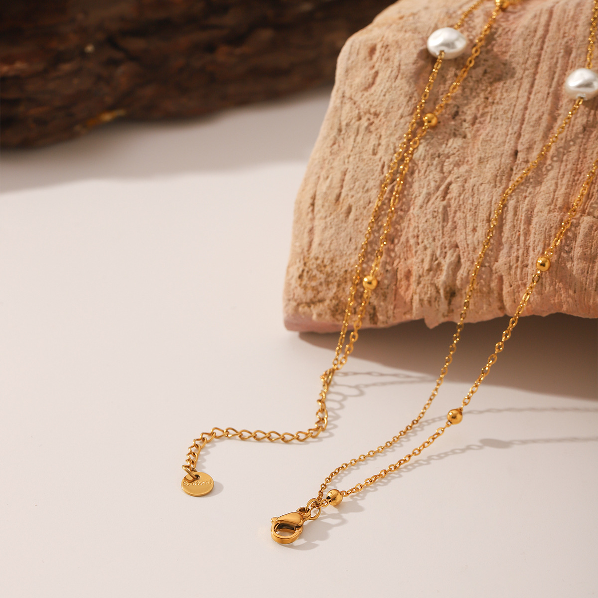 Collar de Acero Inoxidable, acero inoxidable 304, con Perlas plásticas, 18K chapado en oro, Doble capa & Joyería & para mujer, Vendido por UD