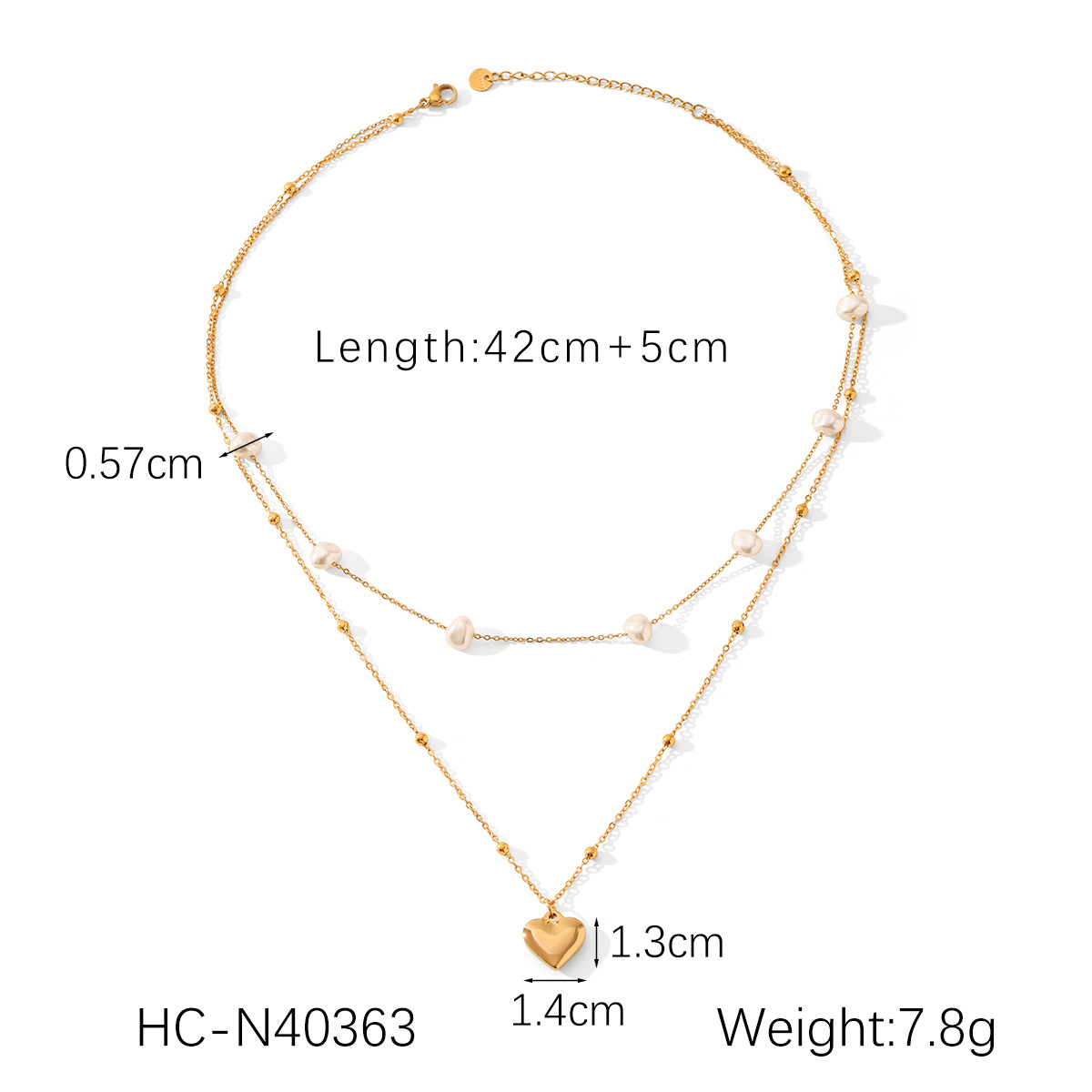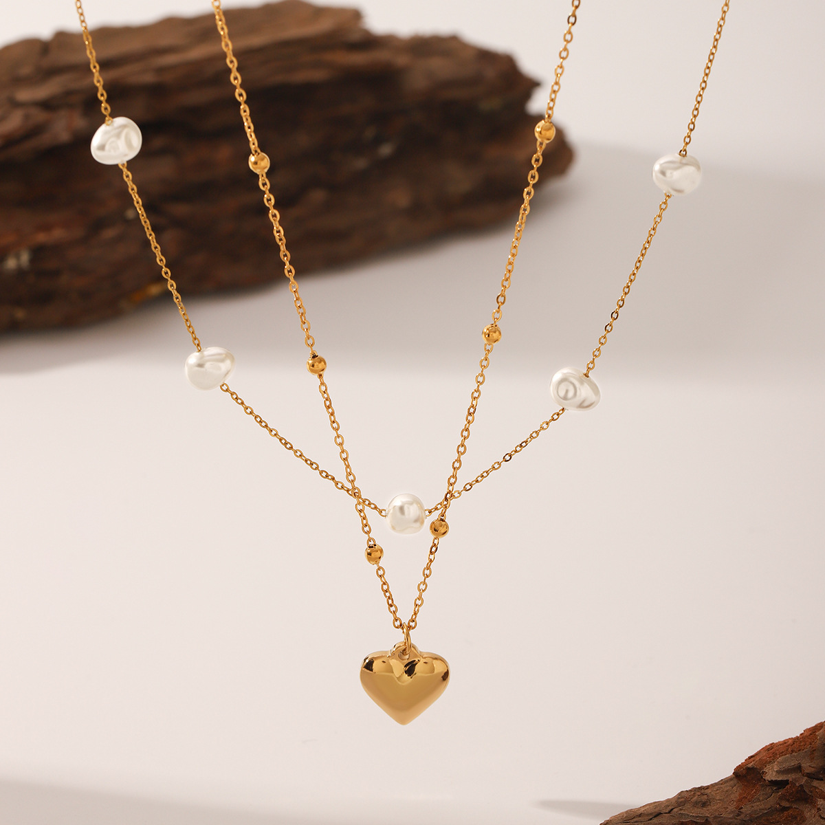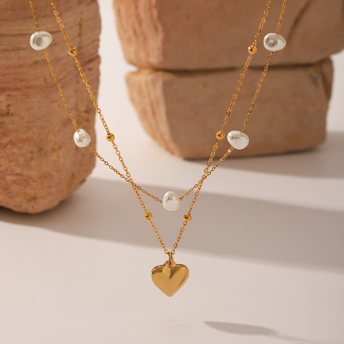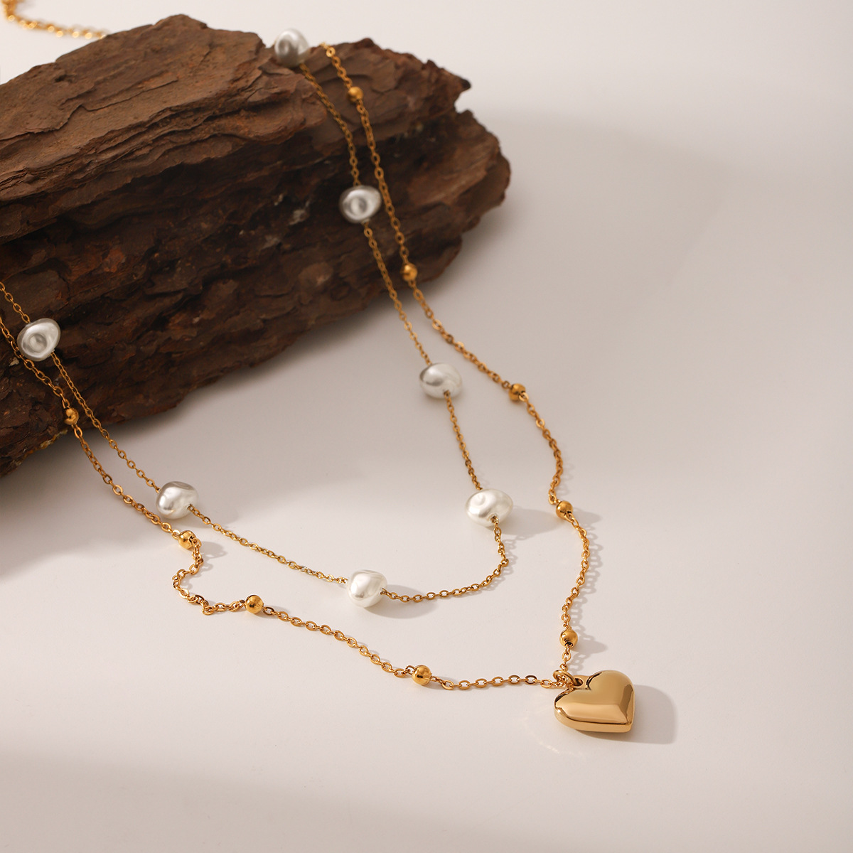 Collar de Acero Inoxidable, acero inoxidable 304, con Perlas plásticas, 18K chapado en oro, Doble capa & Joyería & para mujer, Vendido por UD