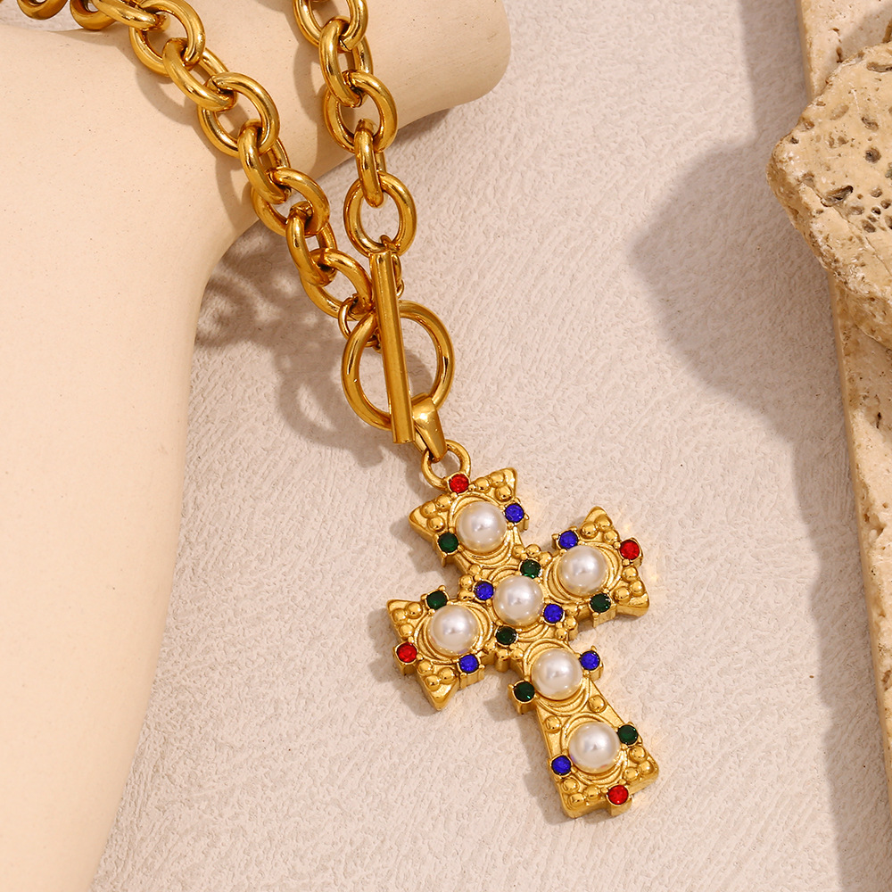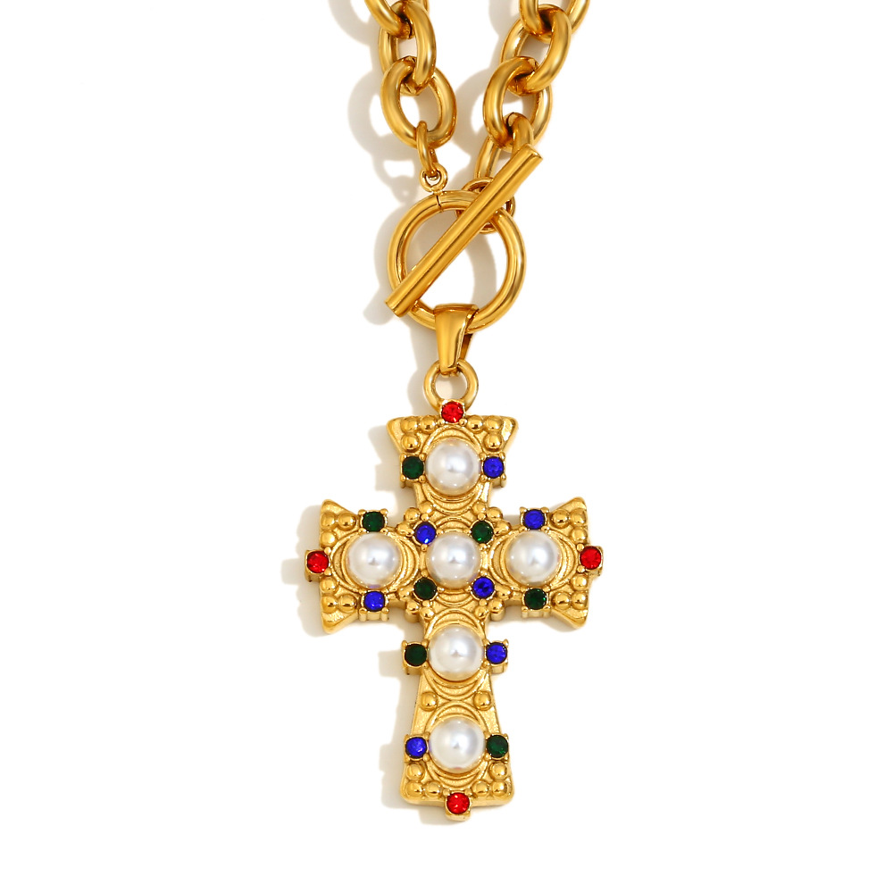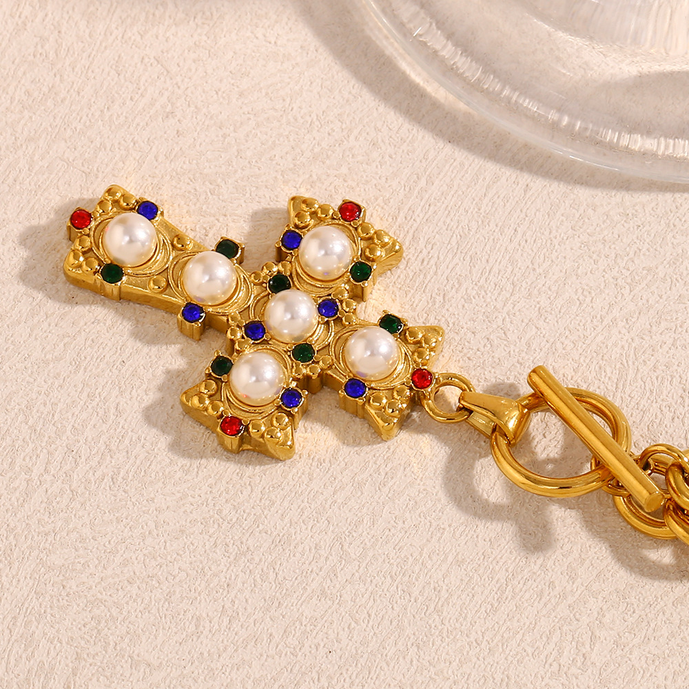 Collar de Acero Inoxidable, acero inoxidable 304, con Perlas plásticas, 18K chapado en oro, Joyería & para mujer & con diamantes de imitación, longitud:46 cm, Vendido por UD