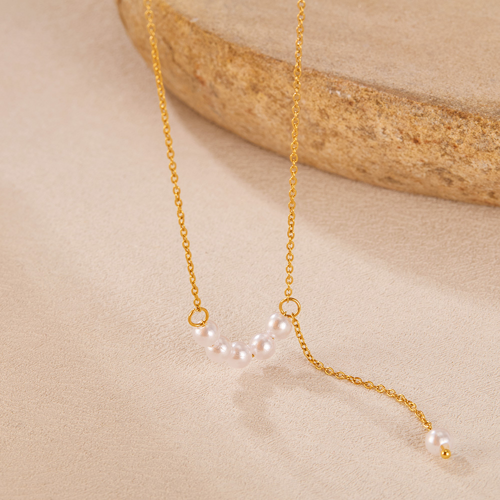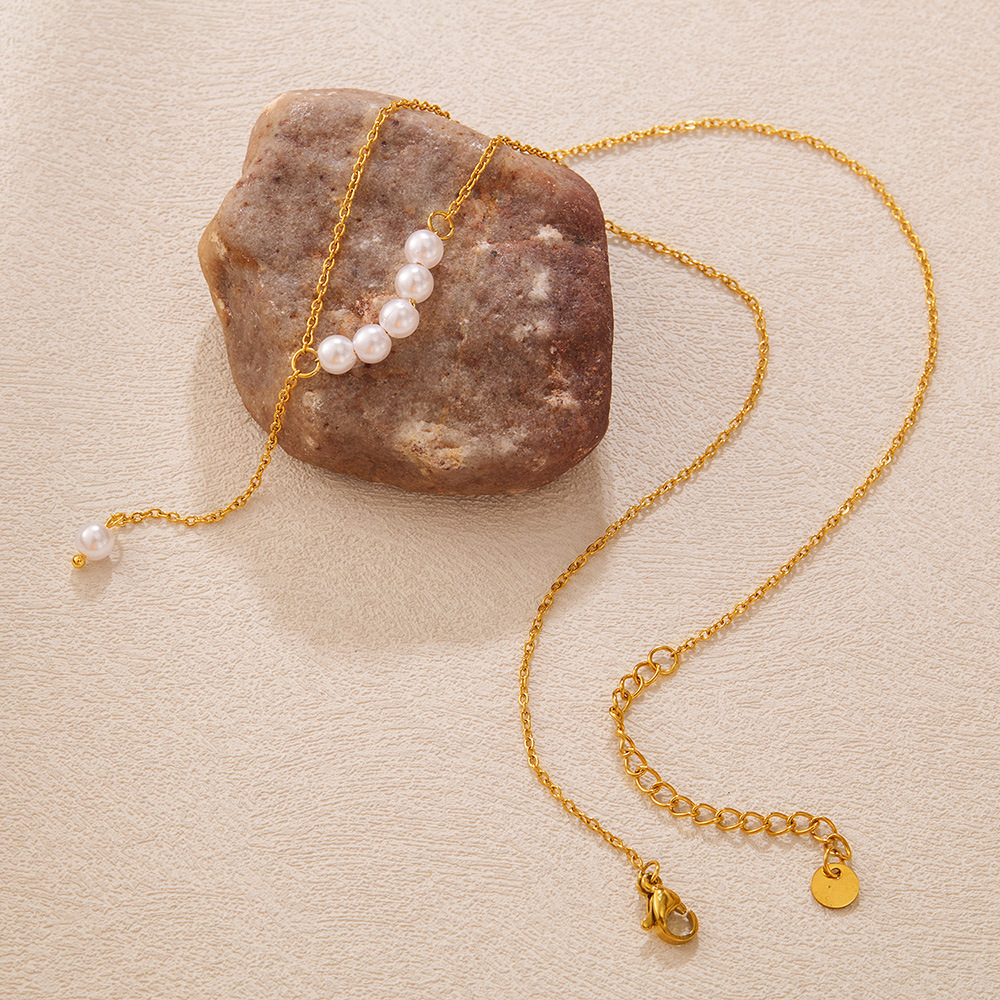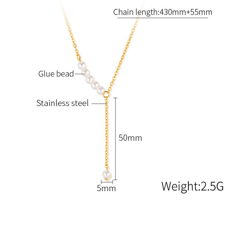 Collar de Acero Inoxidable, acero inoxidable 304, con Perlas plásticas, con 55mm extender cadena, pulido, Joyería & para mujer, dorado, longitud:430 mm, Vendido por UD