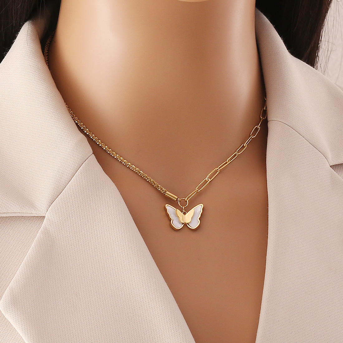 Collar de Acero Inoxidable, acero inoxidable 304, con Nácar, chapado, Joyería & diferentes estilos para la opción & para mujer, dorado, Vendido por UD