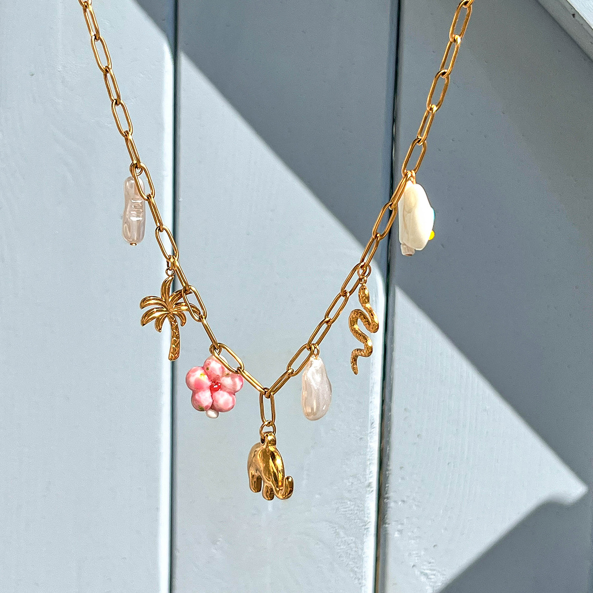 Collar de Acero Inoxidable, acero inoxidable 304, con Perlas plásticas, chapado en color dorado, Joyería, dorado, Vendido por UD
