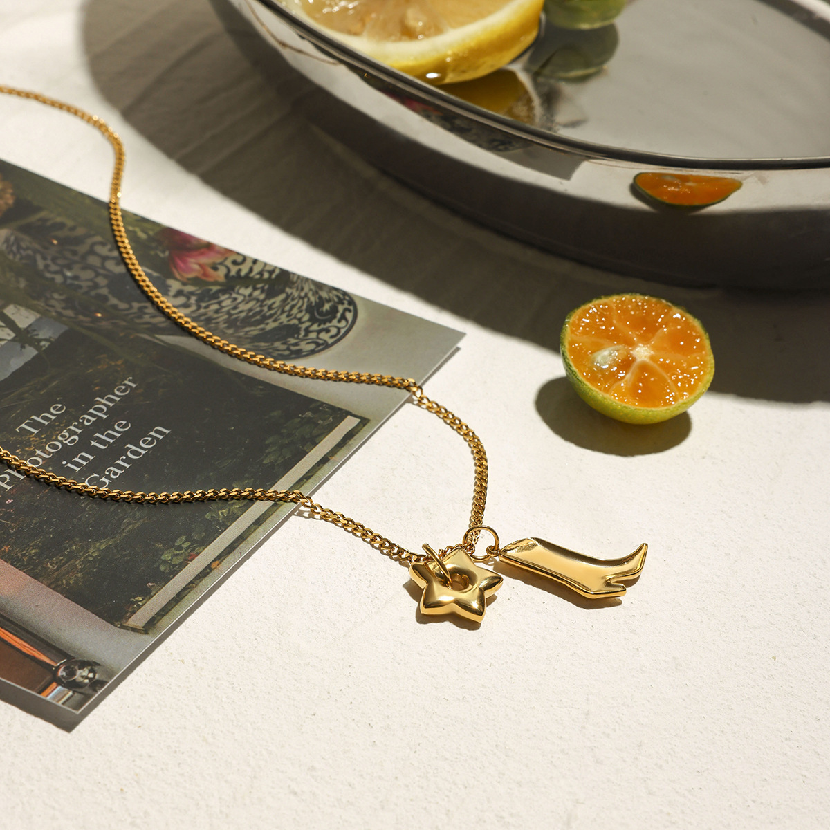 acero inoxidable collar, con 5cm extender cadena, Letra, chapado en color dorado, 35x9mm, longitud:aproximado 20 Inch, Vendido por Sarta