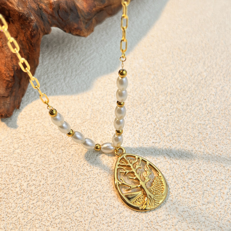 Collar de Acero Inoxidable, acero inoxidable 304, con Perlas plásticas, 18K chapado en oro, diferentes estilos para la opción & para mujer & hueco, longitud:45-80 cm, Vendido por UD