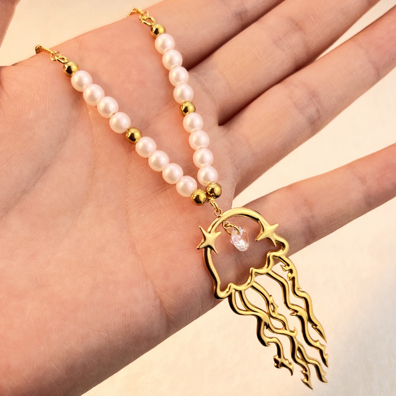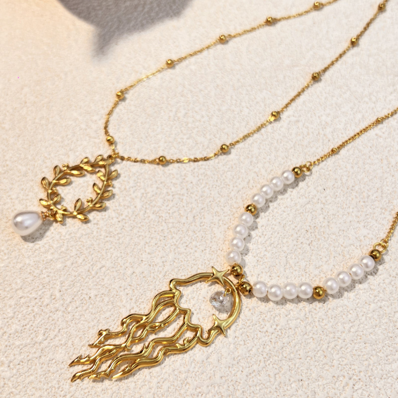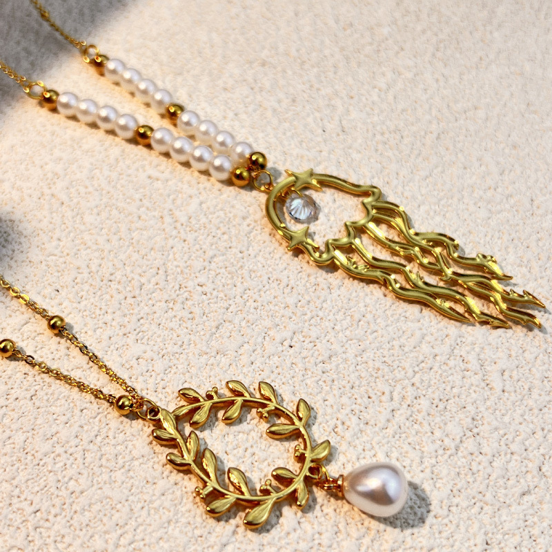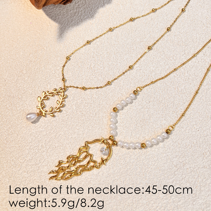 Collar de Acero Inoxidable, acero inoxidable 304, con Perlas cultivadas de agua dulce, 18K chapado en oro, diferentes estilos para la opción & para mujer & hueco, longitud:45-50 cm, Vendido por UD