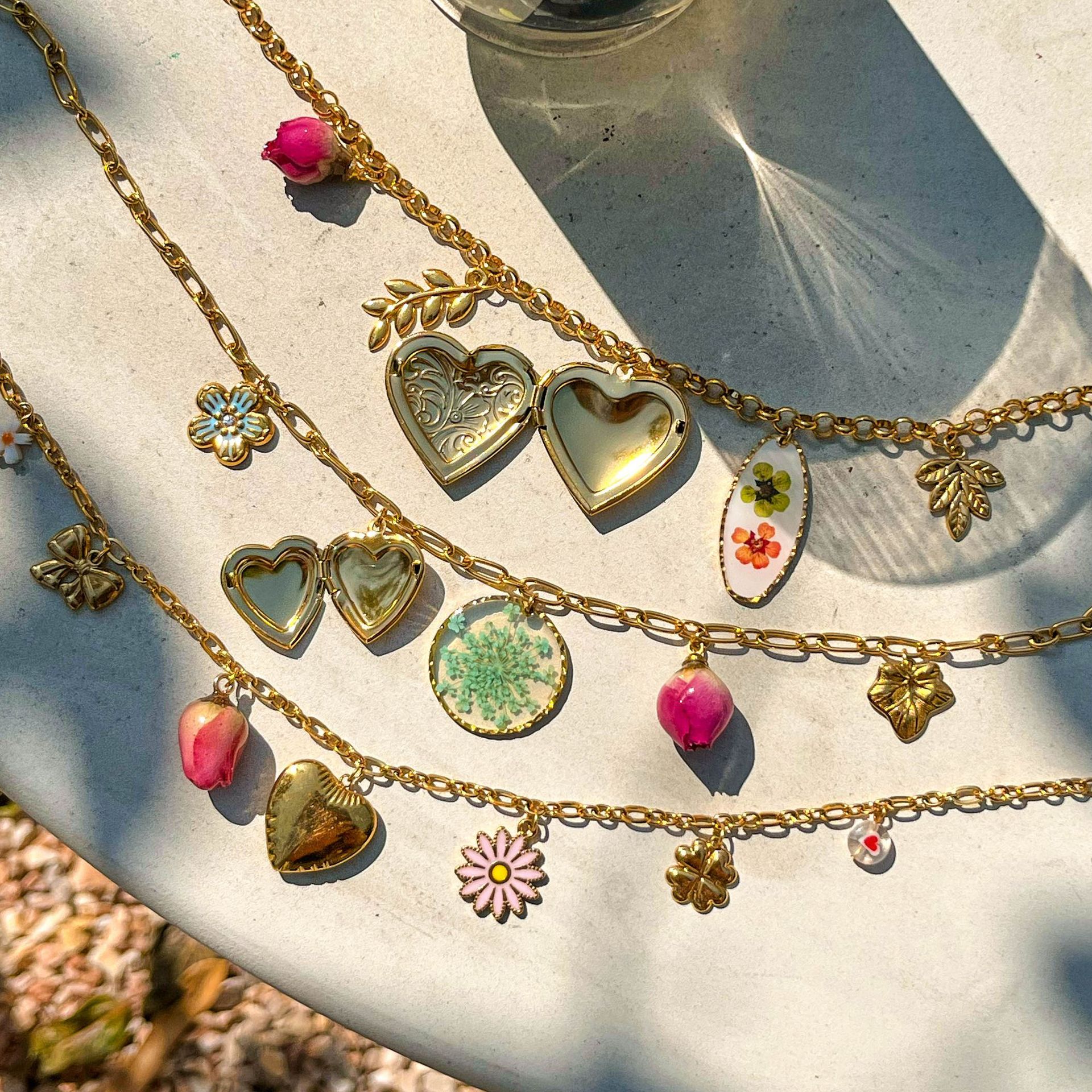 Collar de Acero Inoxidable, acero inoxidable 304, con Flores secas, chapado, diferentes estilos para la opción & para mujer & pegamento de gota, dorado, Vendido por UD
