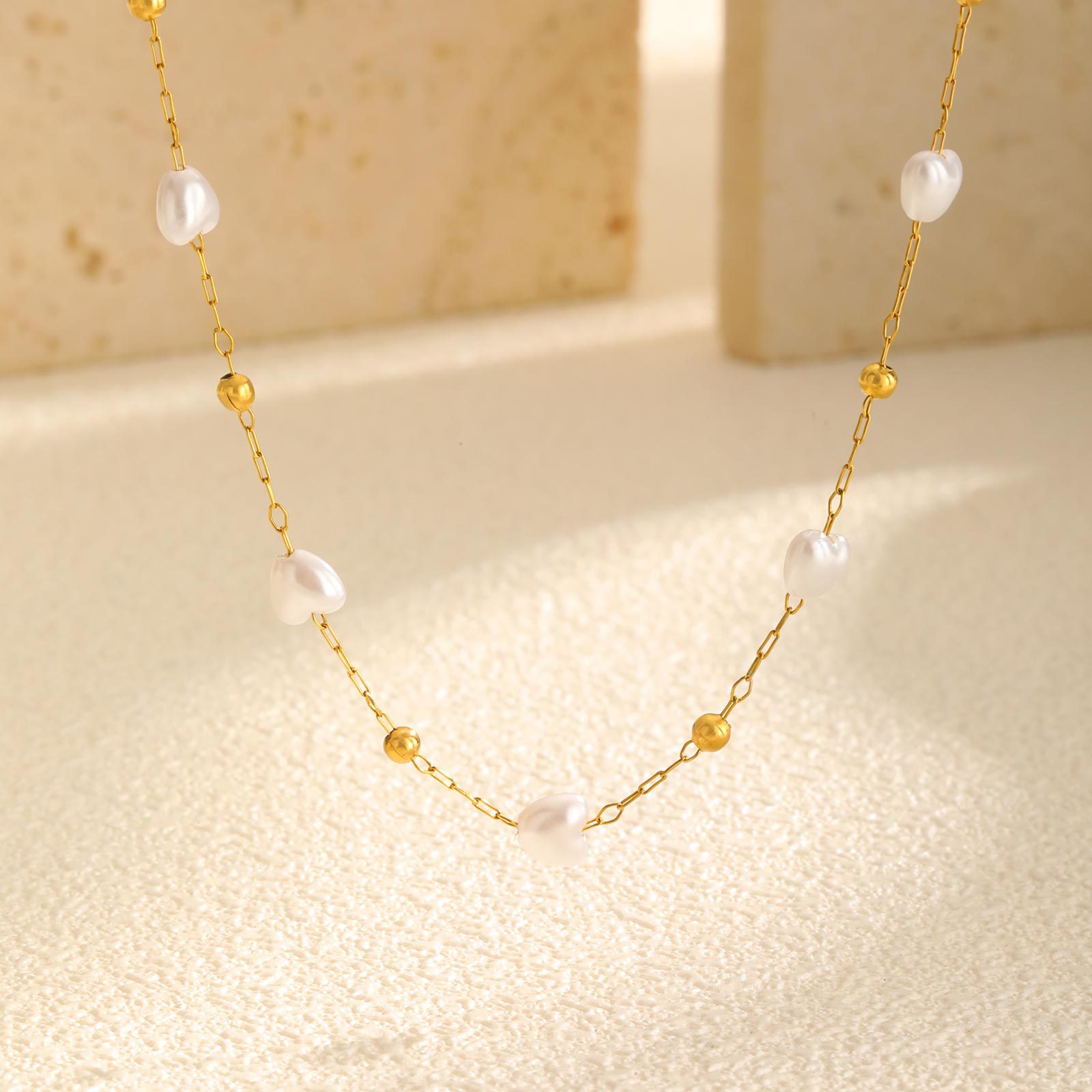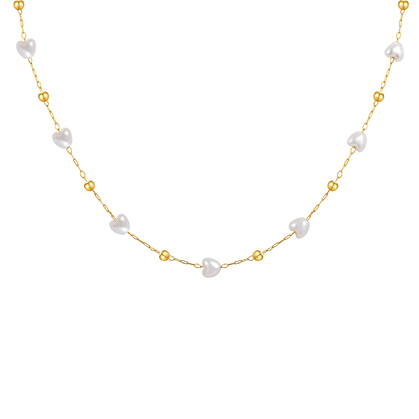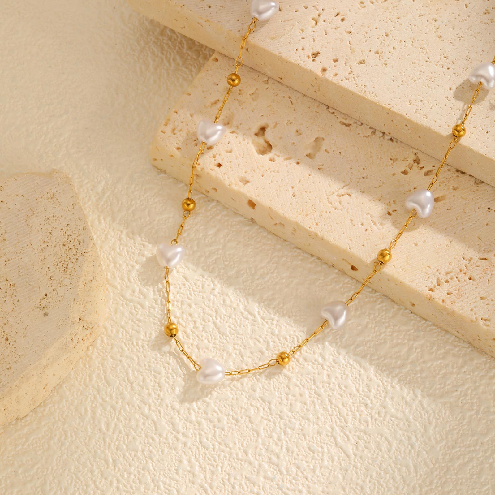 Collar de Acero Inoxidable, acero inoxidable 304, con Perlas plásticas, 18K chapado en oro, Joyería & para mujer, Vendido por UD
