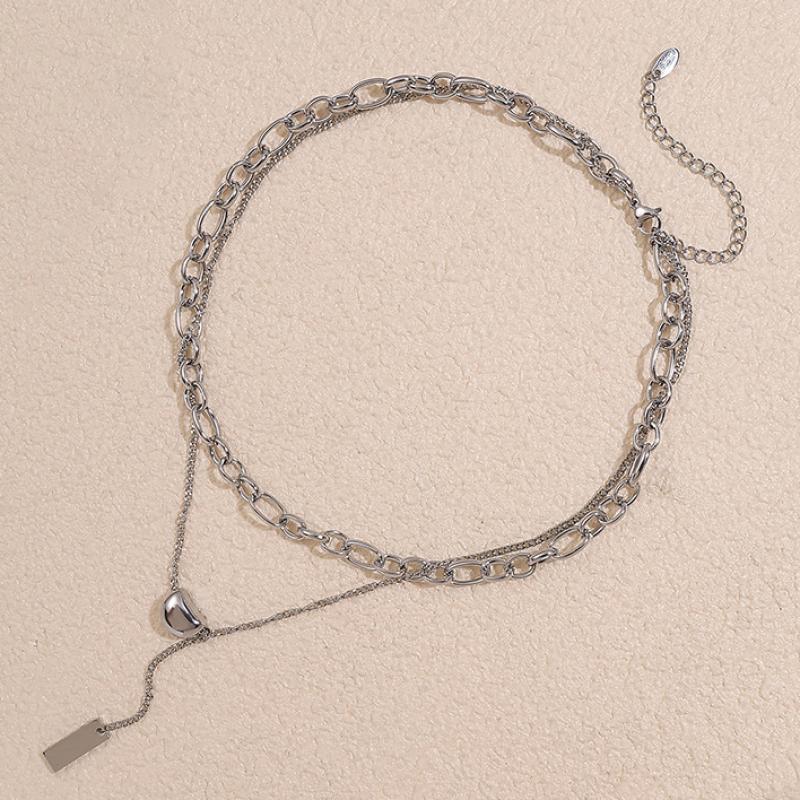 Collar de Acero Inoxidable, acero inoxidable 304, chapado, Doble capa & Joyería & para mujer, color original, Vendido por UD