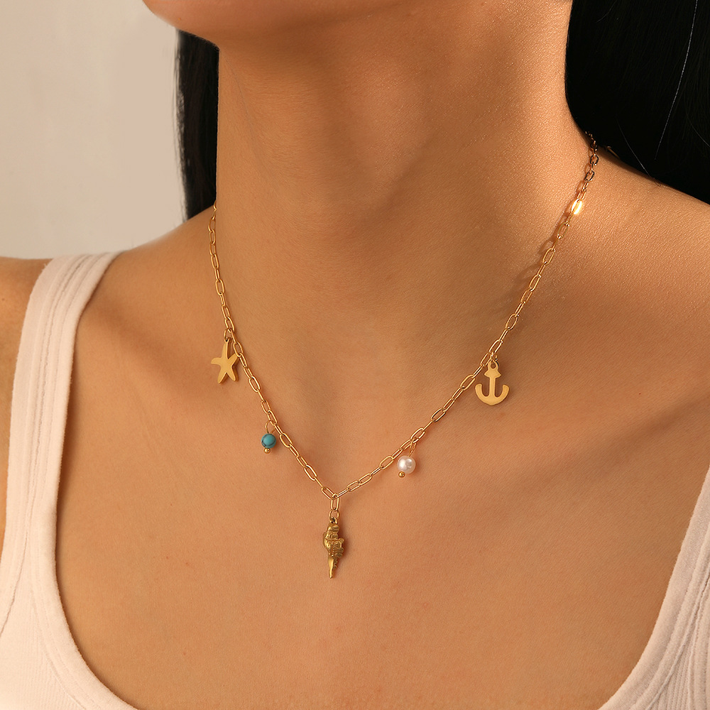 Collar de Acero Inoxidable, acero inoxidable 304, con turquesa & Perlas plásticas, chapado, Joyería & para mujer, dorado, Vendido por UD