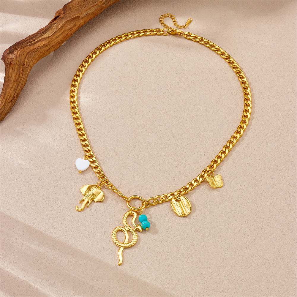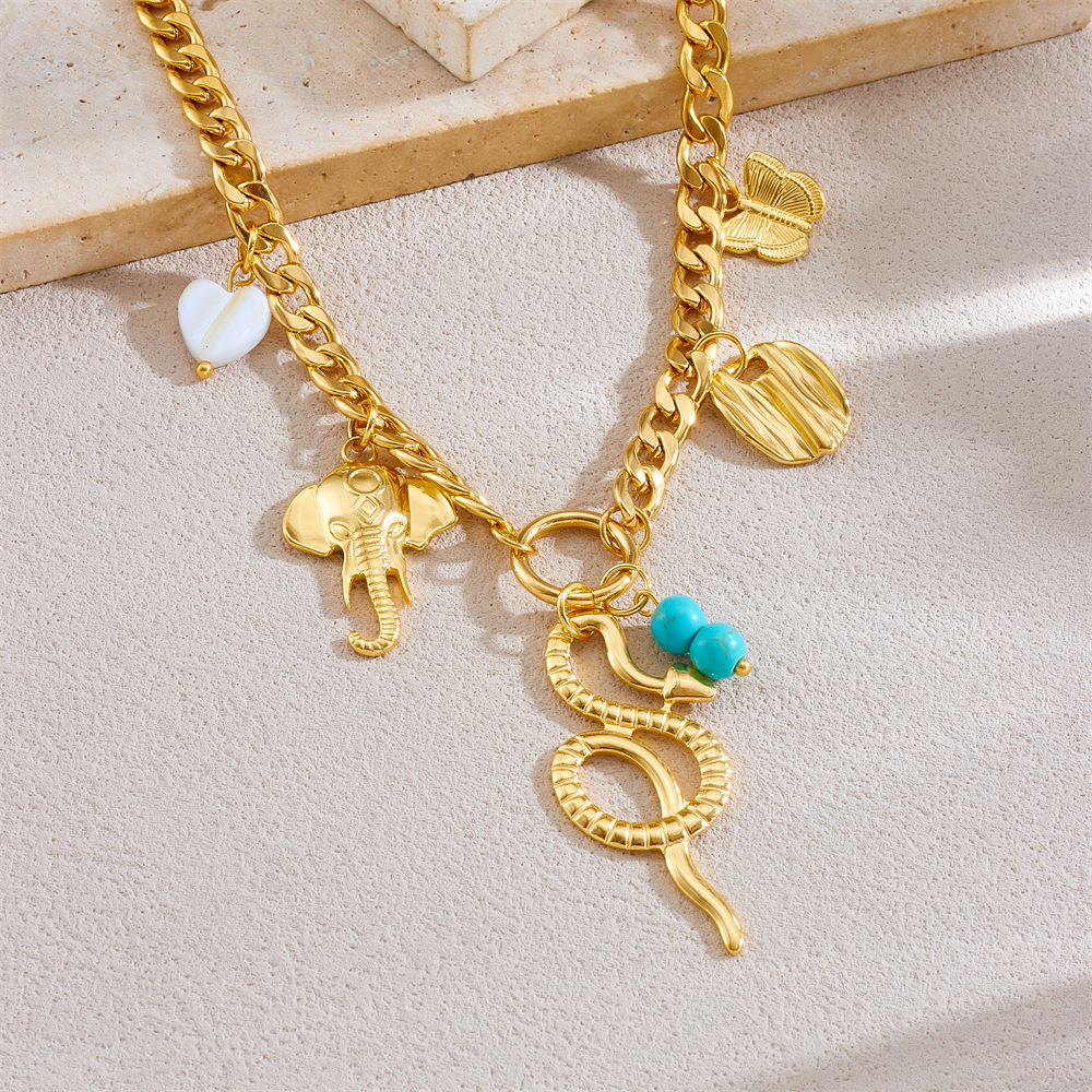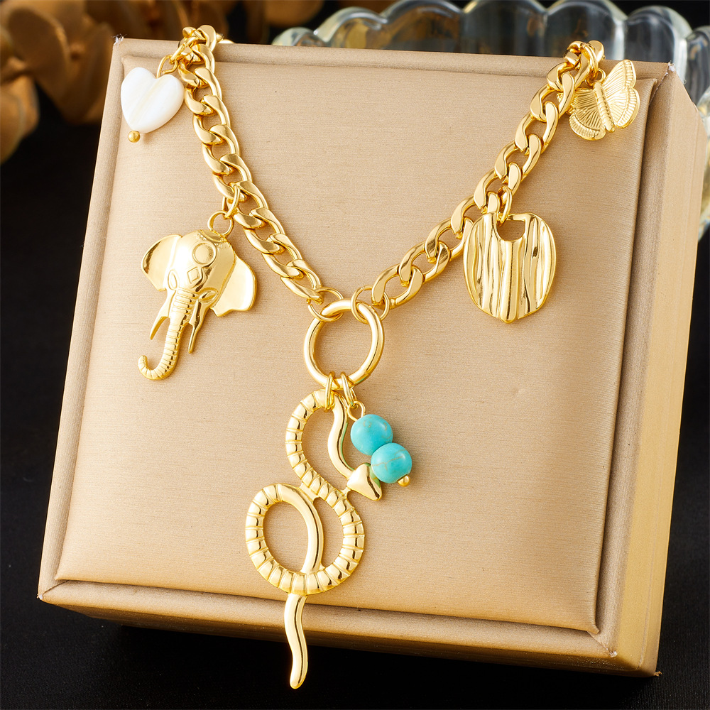 Collar de Acero Inoxidable, acero inoxidable 304, con turquesa & resina, chapado en color dorado, Joyería & para mujer, Vendido por UD