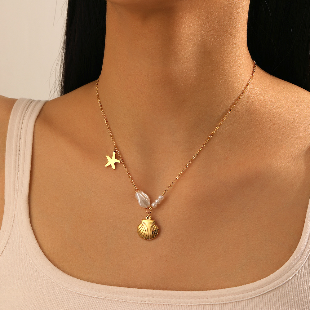 Collar de Acero Inoxidable, acero inoxidable 304, con Perlas plásticas, chapado en color dorado, Joyería & para mujer, Vendido por UD