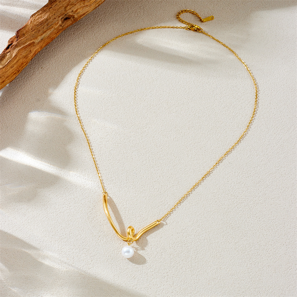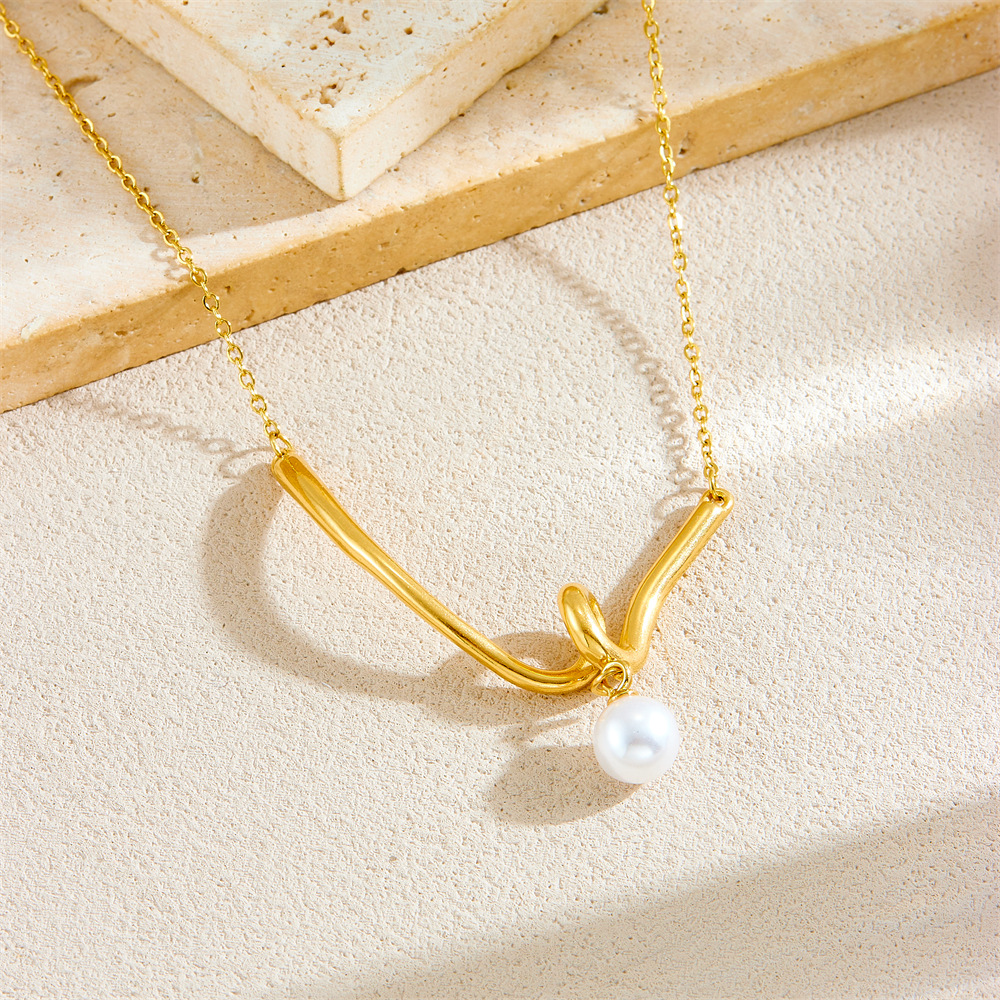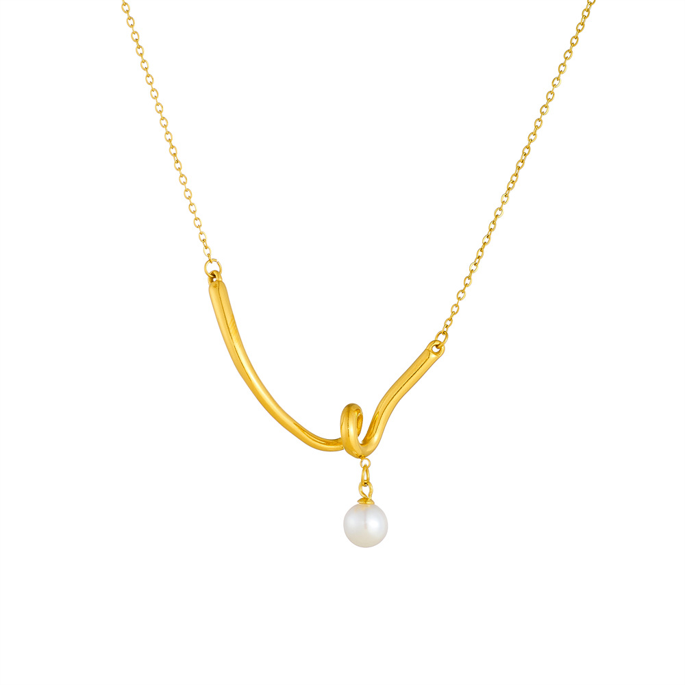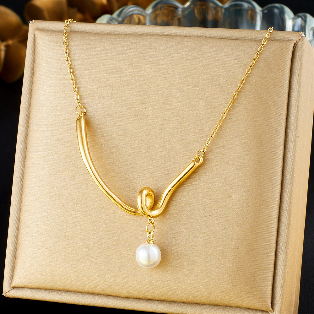 Collar de Acero Inoxidable, acero inoxidable 304, con Perlas plásticas, chapado en color dorado, Joyería & para mujer, Vendido por UD
