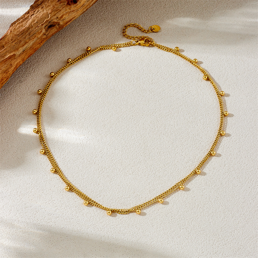 Collar de Acero Inoxidable, acero inoxidable 304, chapado en color dorado, Doble capa & Joyería & para mujer, Vendido por UD