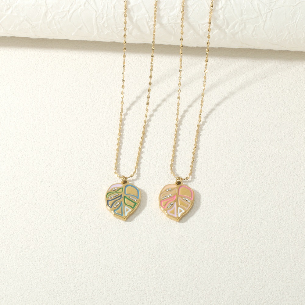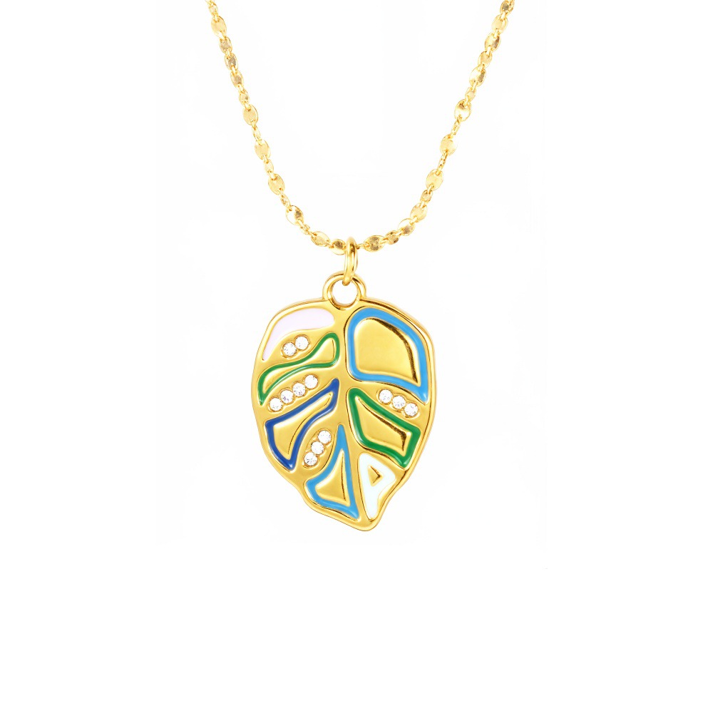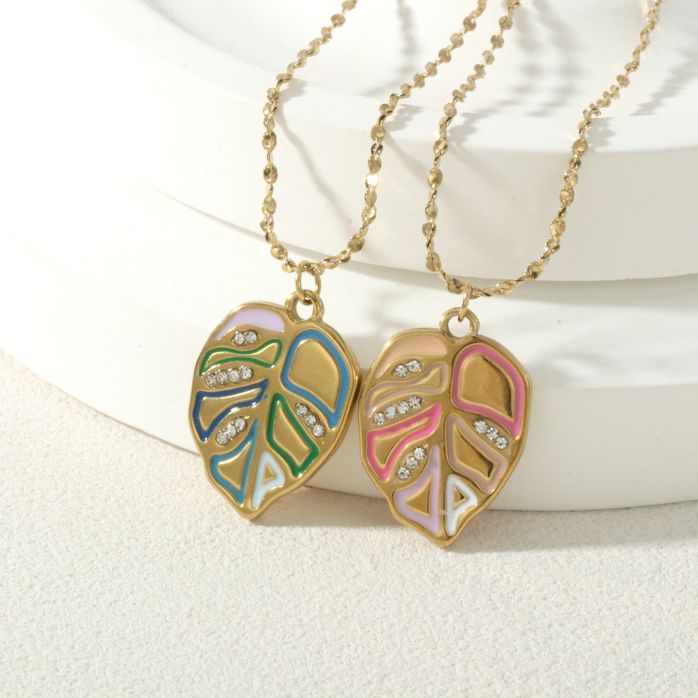 Collar de Acero Inoxidable, acero inoxidable 304, Hoja, chapado en color dorado, Joyería & diferentes estilos para la opción & micro arcilla de zirconia cúbica & esmalte, más colores para la opción, Vendido por UD