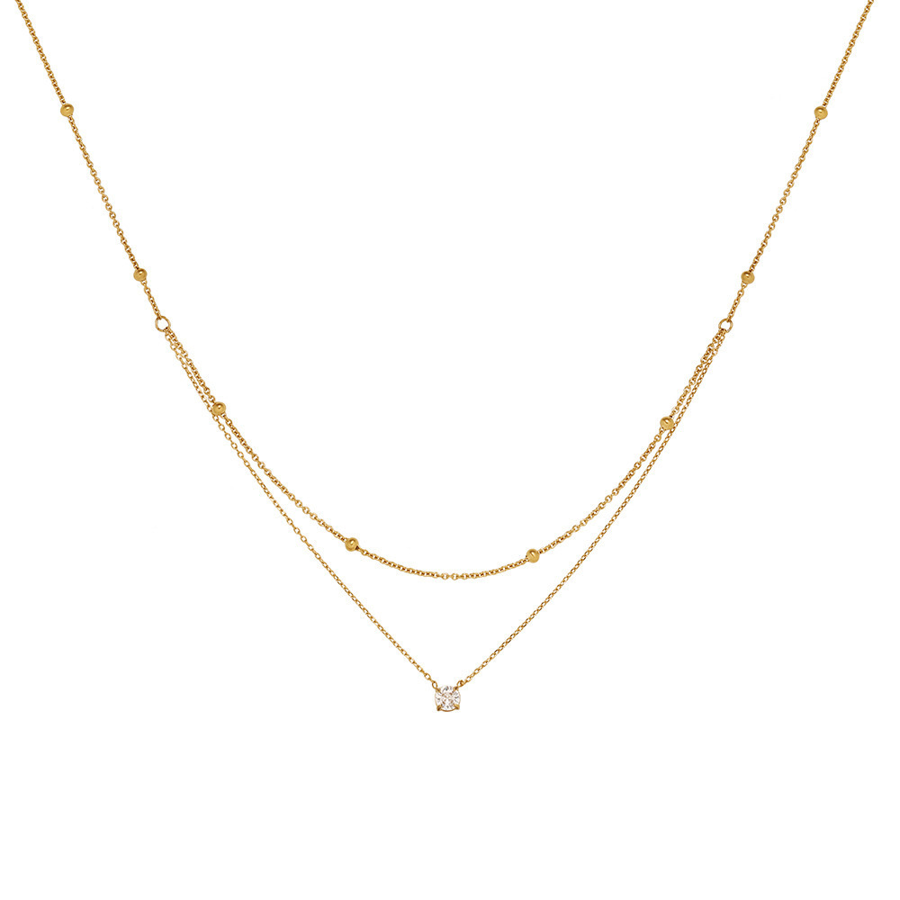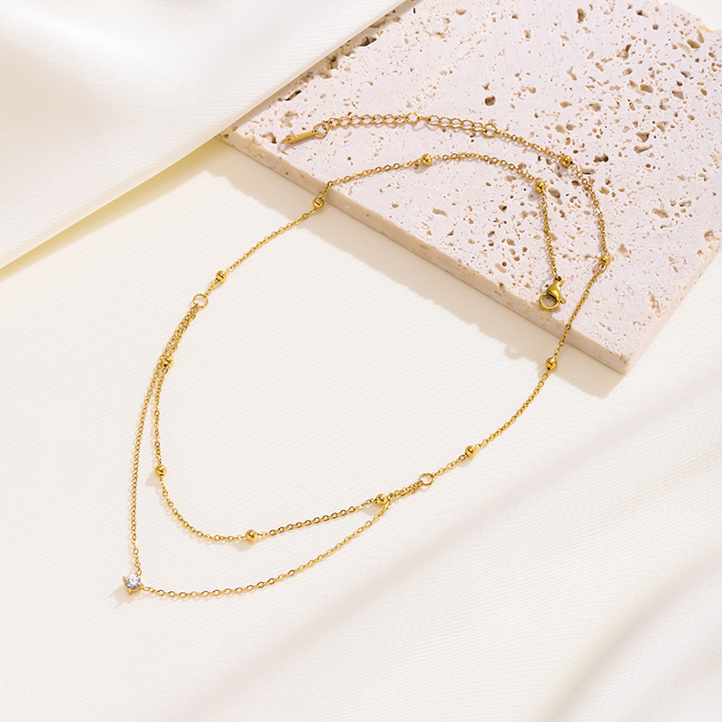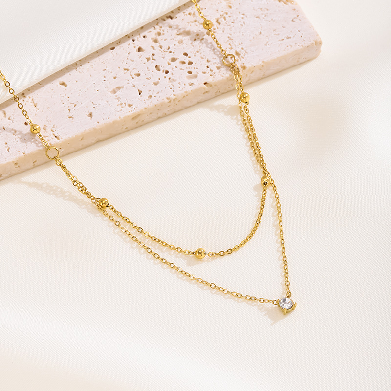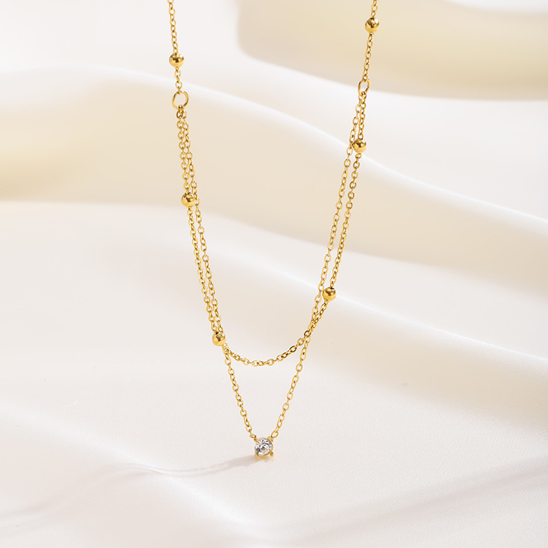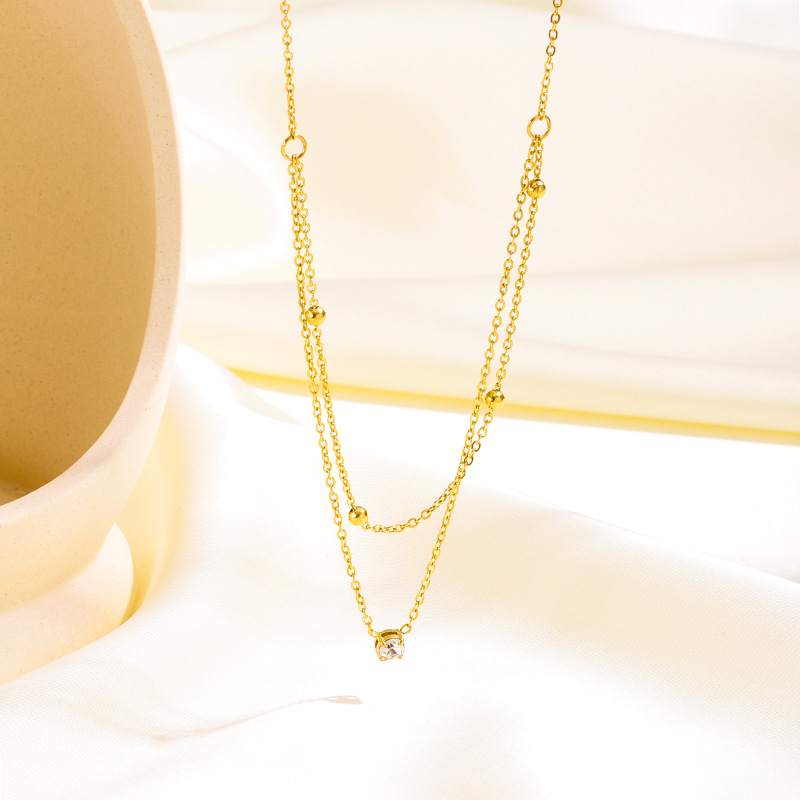 Collar de Acero Inoxidable, acero inoxidable 304, chapado, Doble capa & para mujer & con diamantes de imitación, dorado, longitud:aproximado 41-50 cm, Vendido por UD