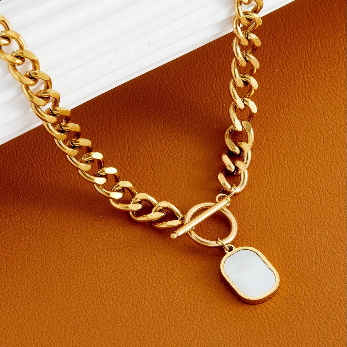 Collar de Acero Inoxidable, acero inoxidable 304, con Nácar Blanca, chapado en color dorado, Joyería & diferentes materiales para la opción & para mujer, más colores para la opción, longitud:aproximado 45 cm, Vendido por UD