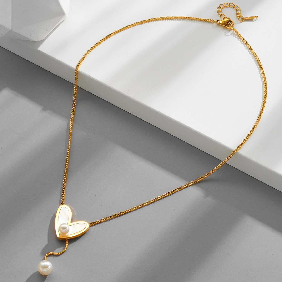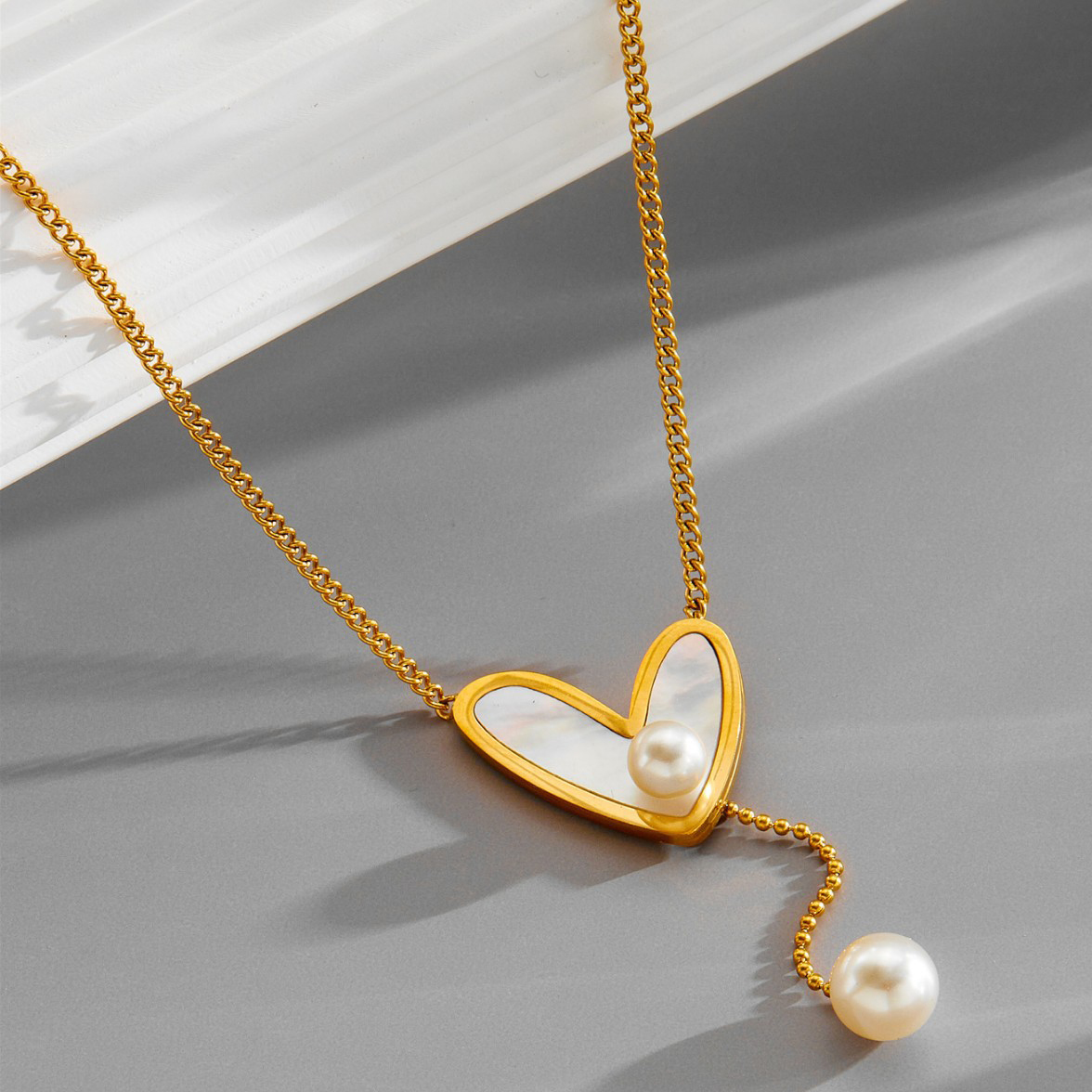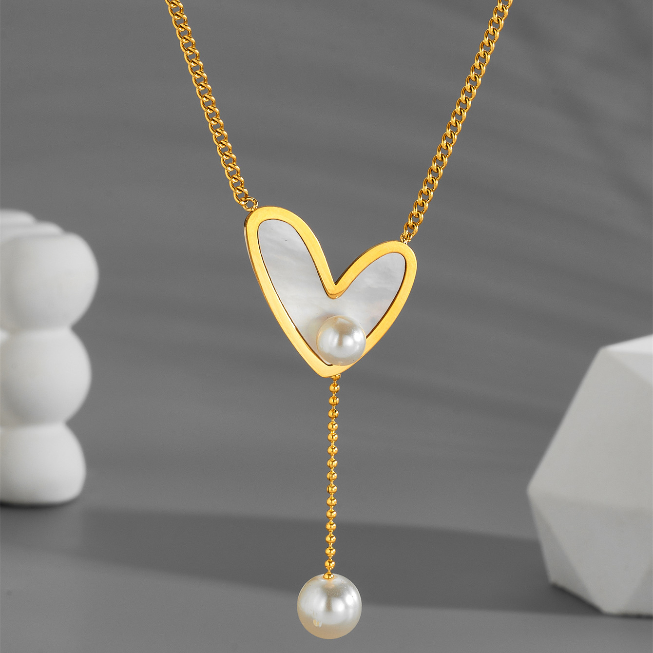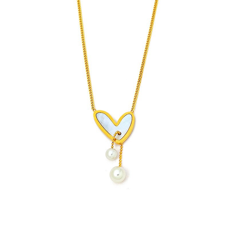 Collar de Acero Inoxidable, acero inoxidable 304, con Nácar Blanca & Perlas plásticas, chapado, Joyería & para mujer, dorado, longitud:aproximado 45 cm, Vendido por UD