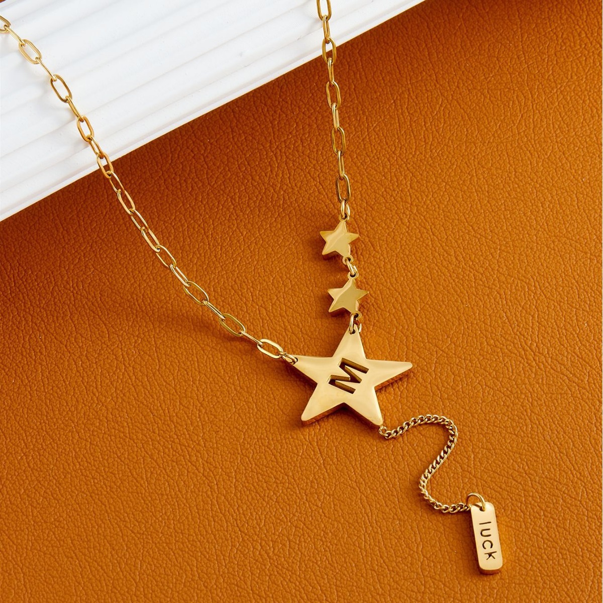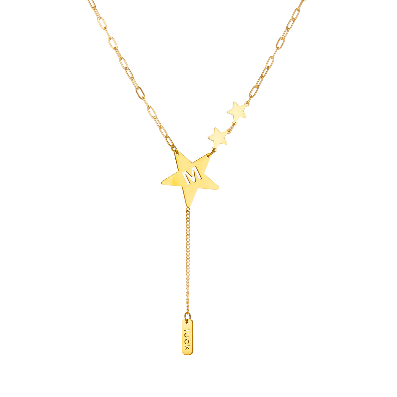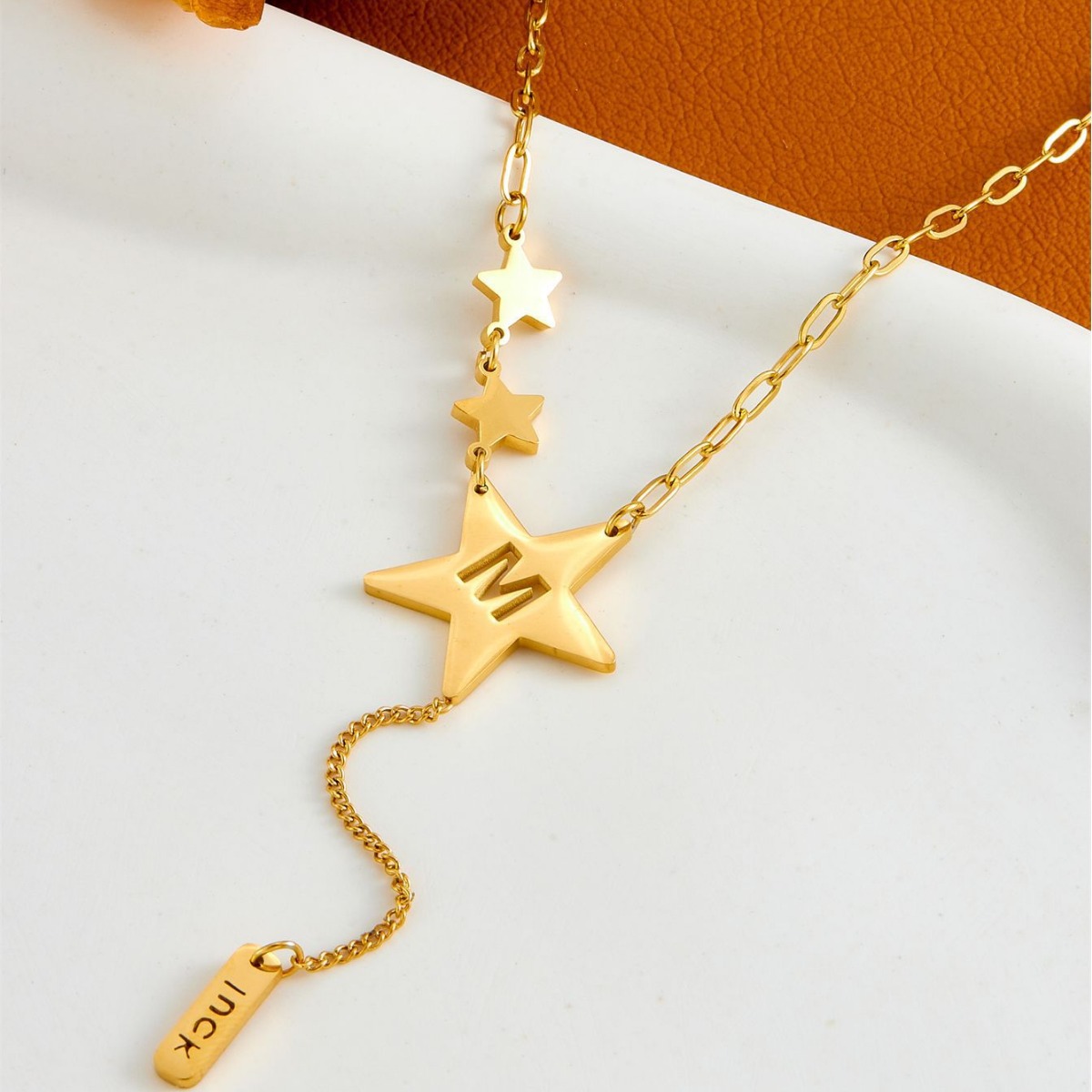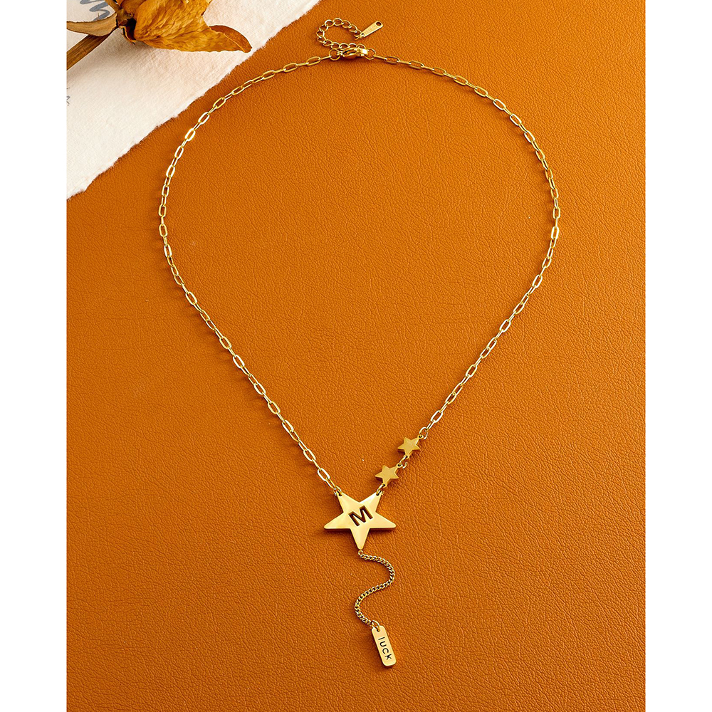 acero inoxidable collar, con 5cm extender cadena, Letra, chapado en color dorado, 35x9mm, longitud:aproximado 20 Inch, Vendido por Sarta