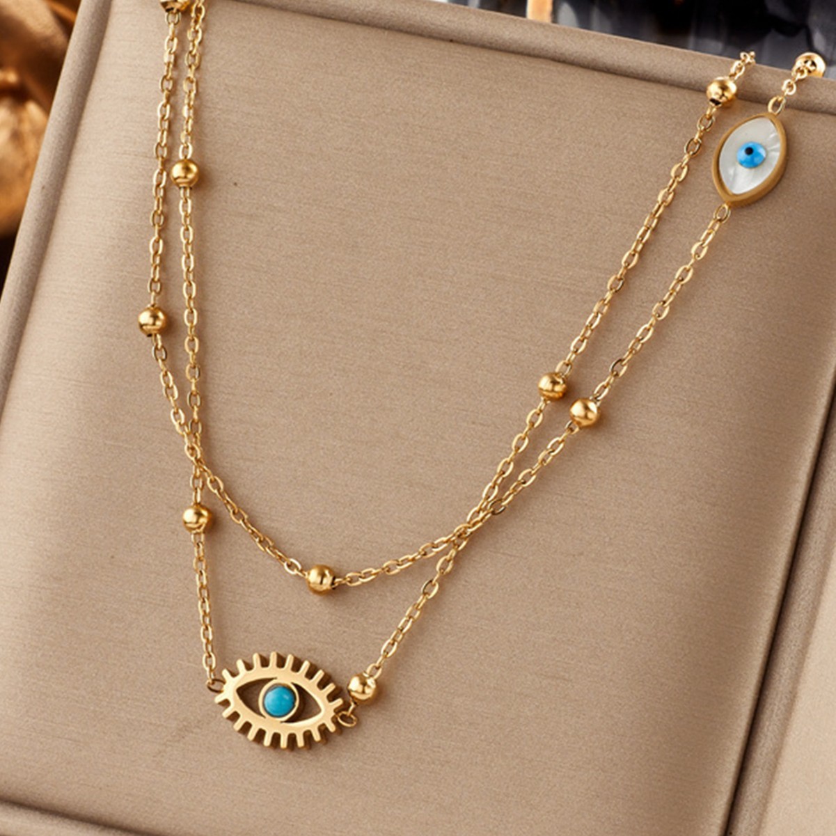 Collar de Acero Inoxidable, acero inoxidable 304, con turquesa, chapado, Doble capa & para mujer & esmalte, dorado, Vendido por UD