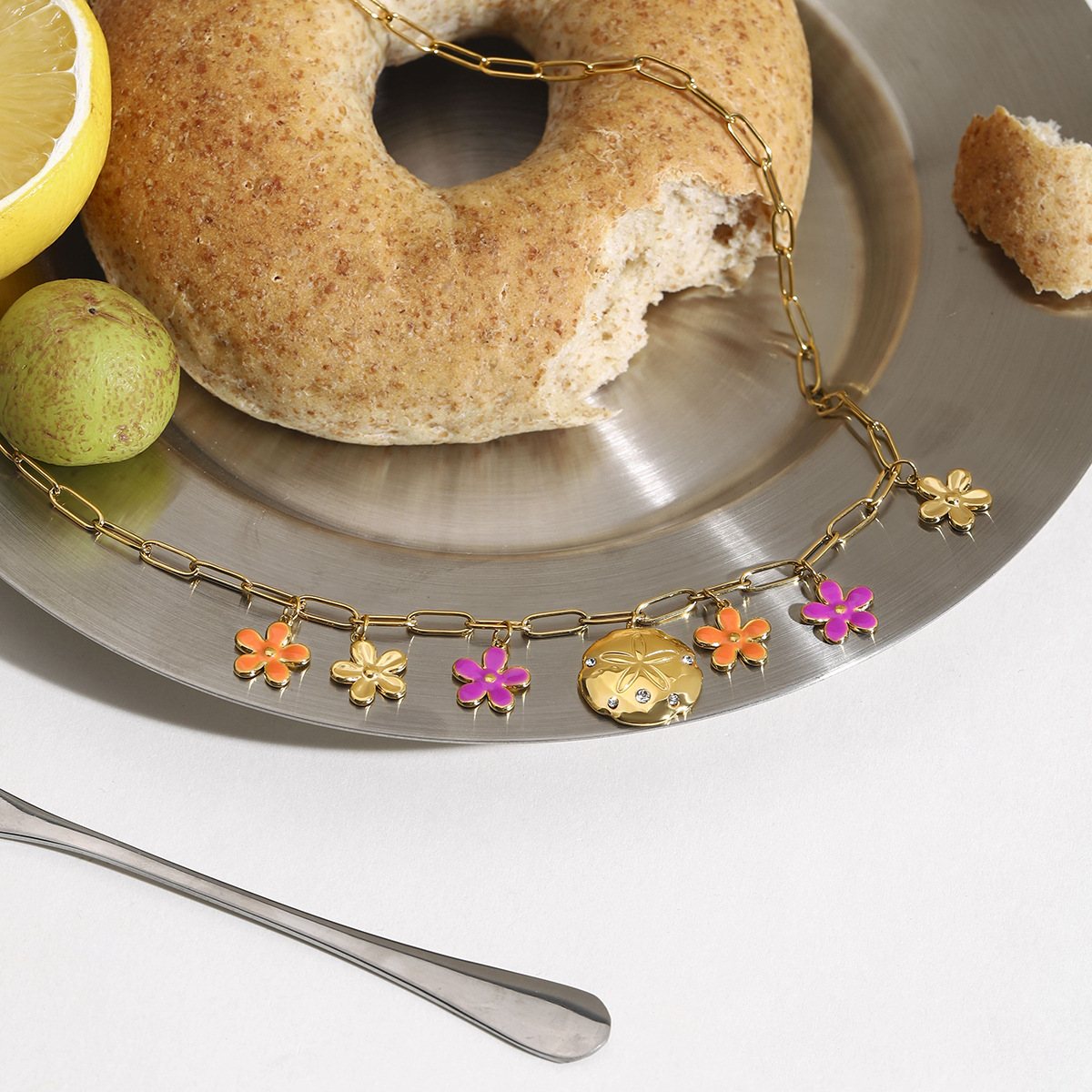 Collar de Acero Inoxidable, acero inoxidable 304, chapado en color dorado, Joyería & esmalte & con diamantes de imitación, más colores para la opción, Vendido por UD