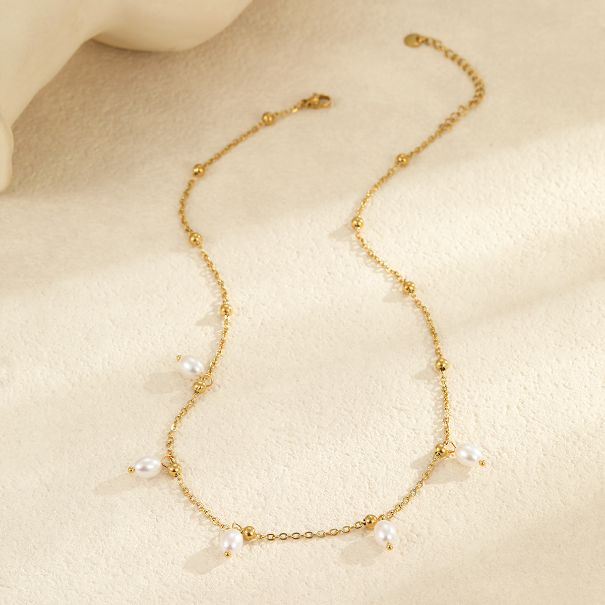Collar de Acero Inoxidable, acero inoxidable 304, con Perlas plásticas, 18K chapado en oro, Joyería & diferentes estilos para la opción & para mujer, Vendido por UD