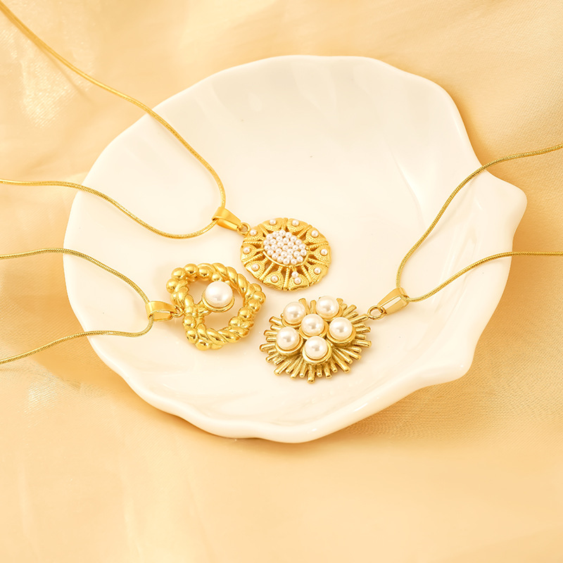 Collar de Acero Inoxidable, acero inoxidable 304, con Perlas plásticas, 18K chapado en oro, Joyería & diferentes estilos para la opción & para mujer, Vendido por UD