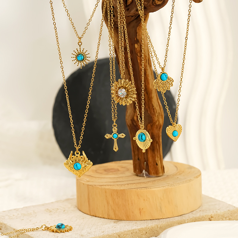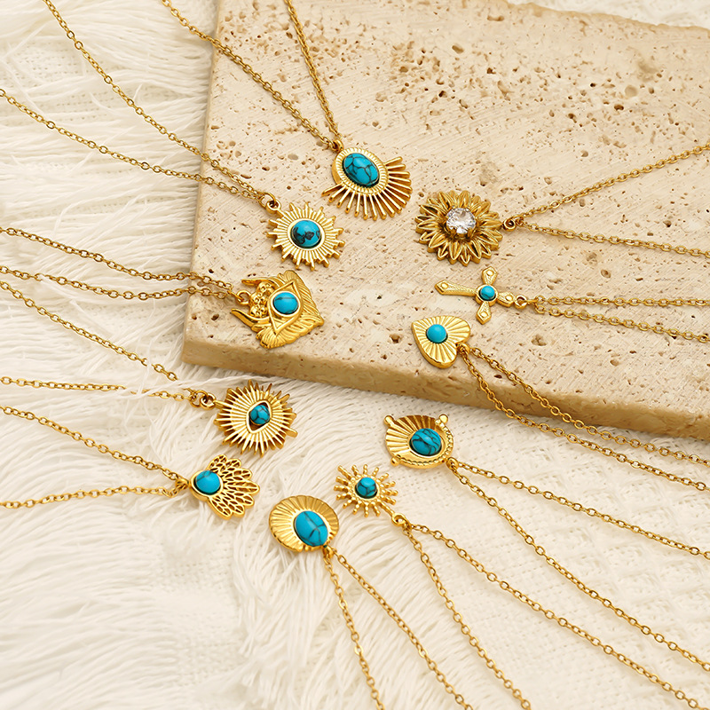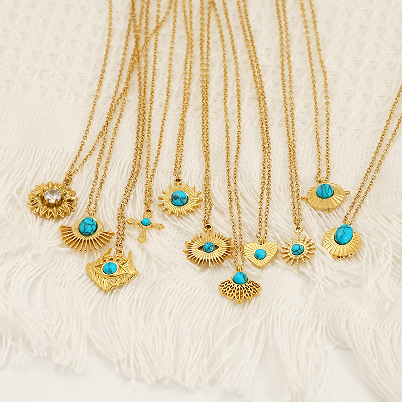 Collar de Acero Inoxidable, acero inoxidable 304, con turquesa, 18K chapado en oro, Joyería & diferentes estilos para la opción & para mujer, Vendido por UD