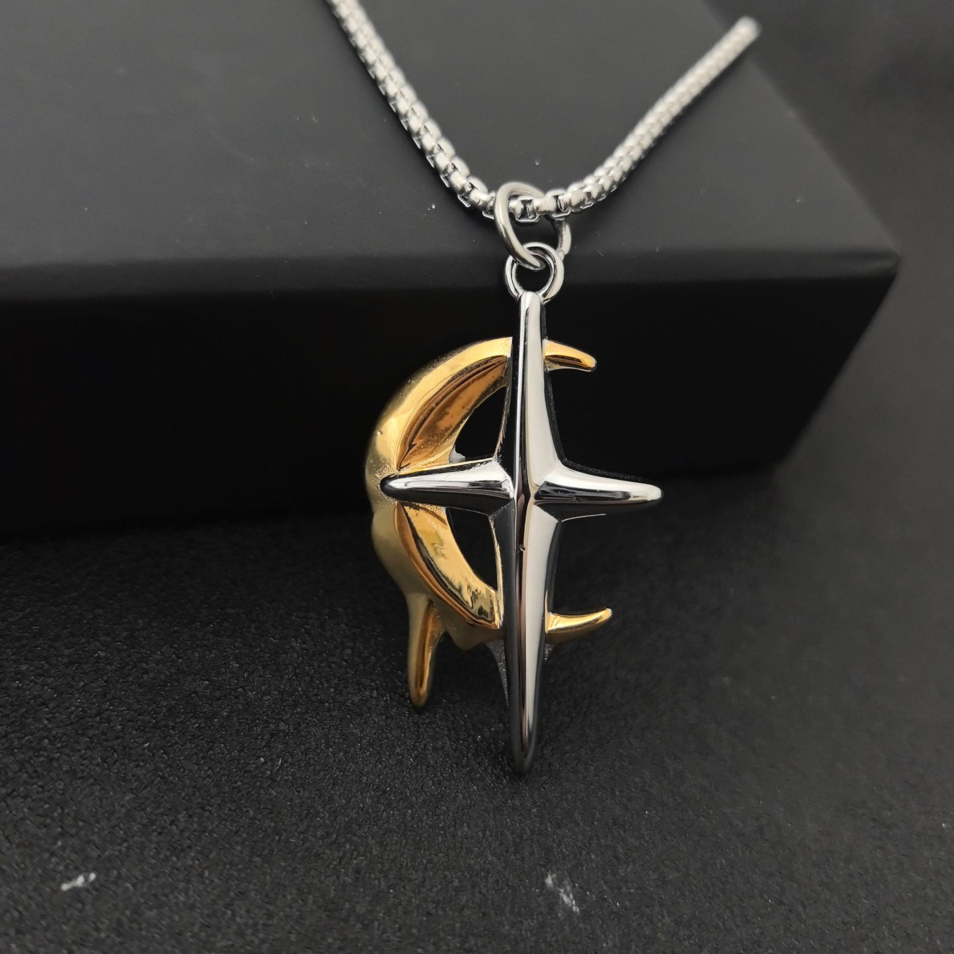 Collar de Acero Inoxidable, acero inoxidable 304, chapado, Joyería & unisexo & 2-tono, Pendant :44x25x5mm, longitud:60 cm, Vendido por UD