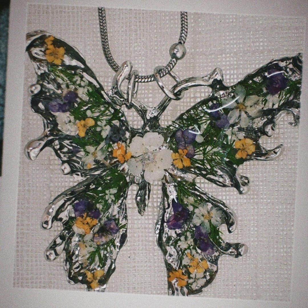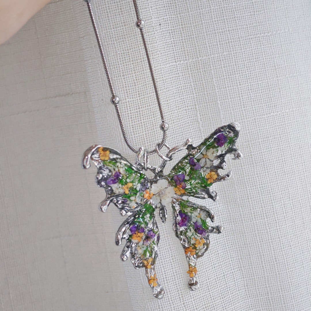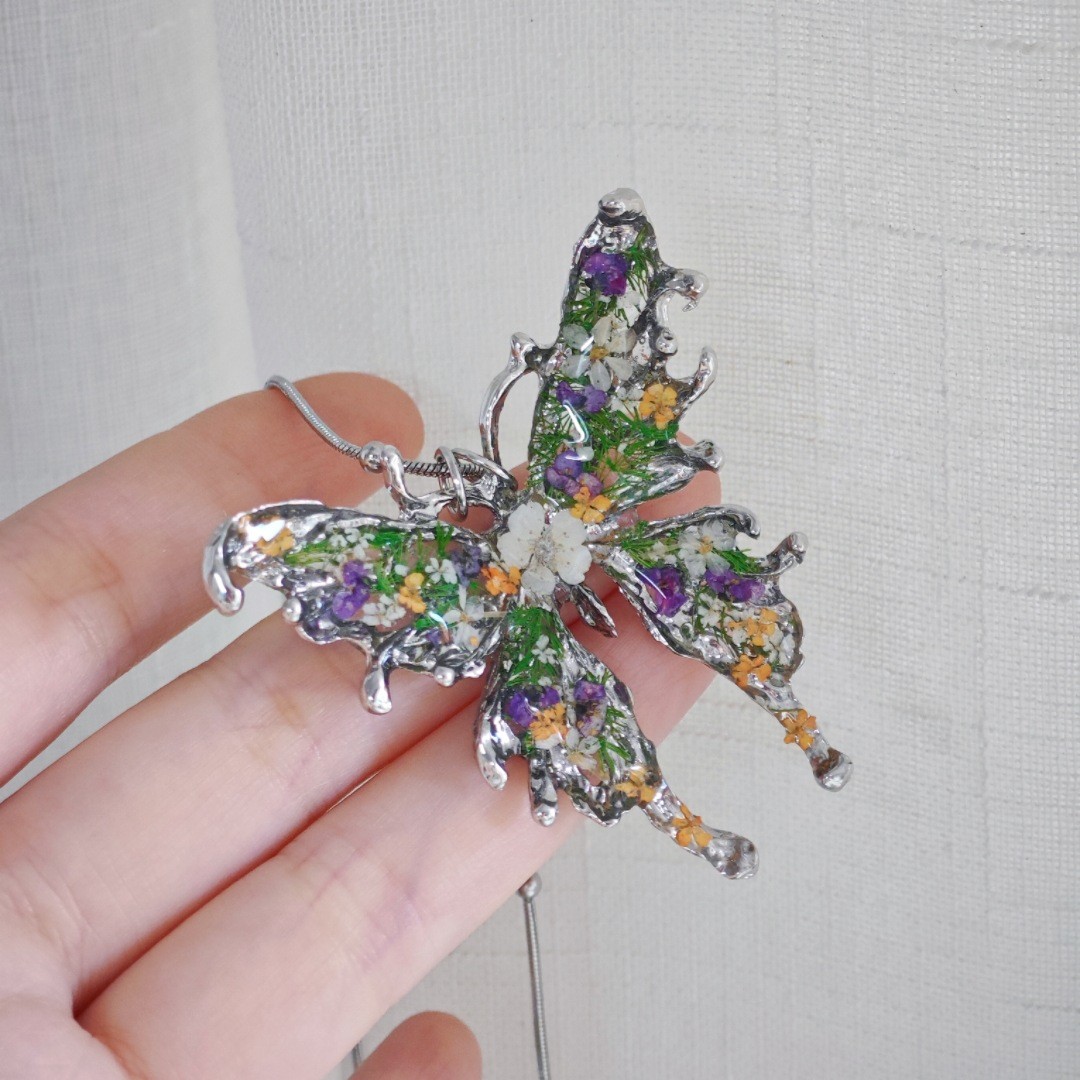 Collar de Acero Inoxidable, con Flores secas & resina & aleación de zinc, con 5cm extender cadena, Mariposa, Joyería & para mujer & pegamento de gota, longitud:aproximado 45 cm, Vendido por UD