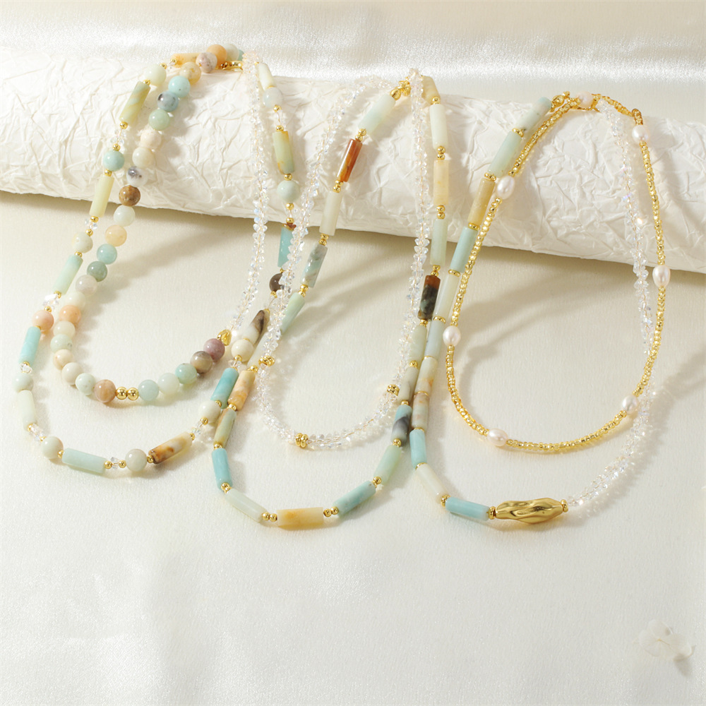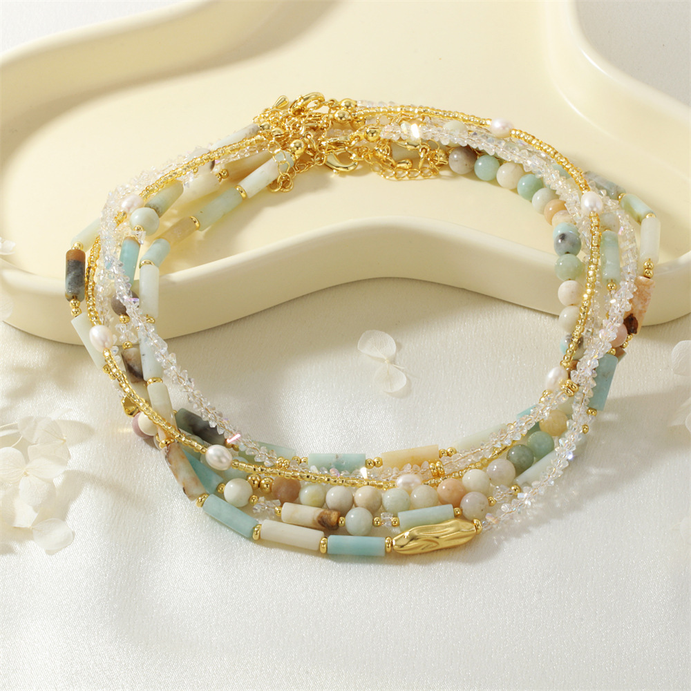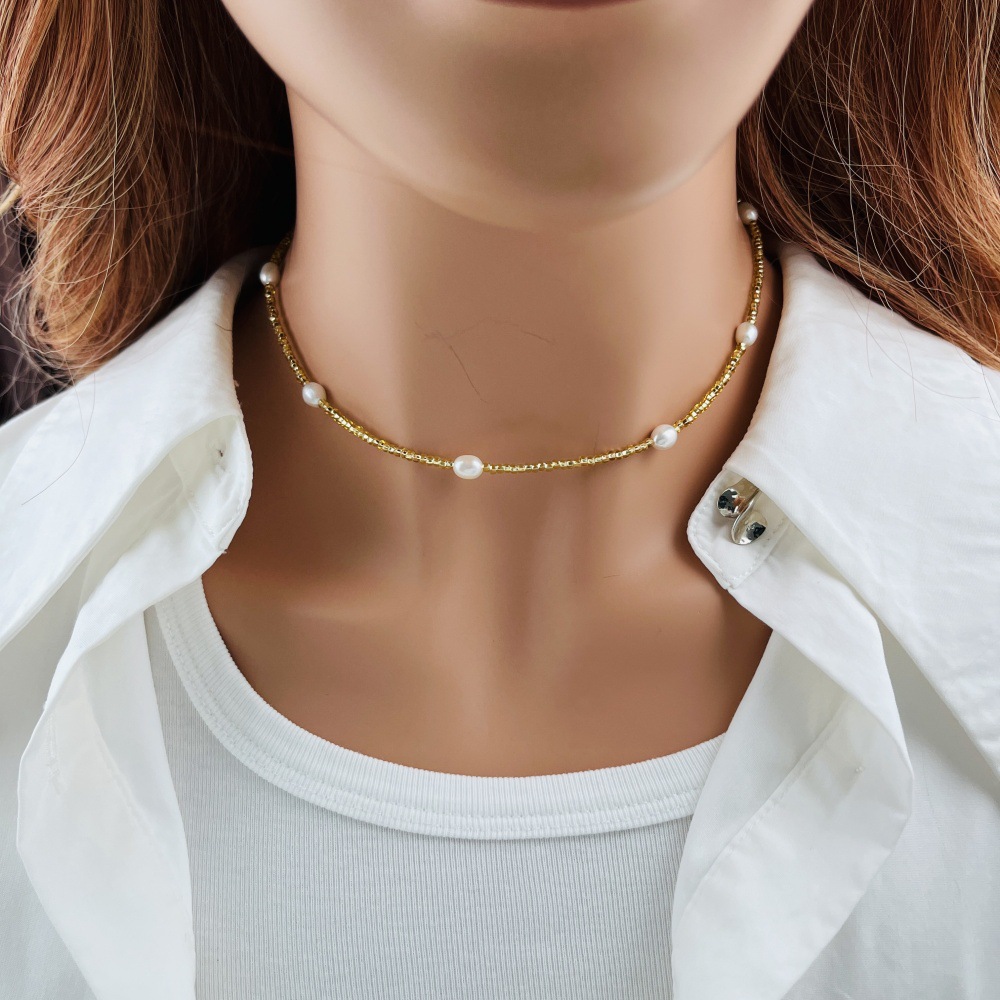 Collar de Perlas Freshwater y Cristales, metal, con Perlas cultivadas de agua dulce & Cristal, chapado en color dorado, diferentes estilos para la opción & para mujer, más colores para la opción, Vendido por UD