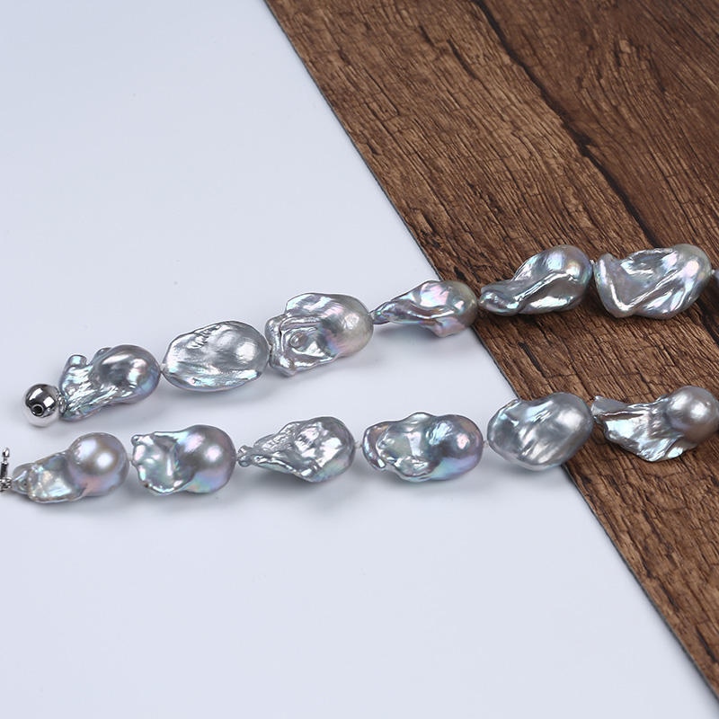 Collar de Perlas Natural de Freshwater, Perlas cultivadas de agua dulce, Irregular, para mujer, gris, About:14-18mm, Vendido por UD