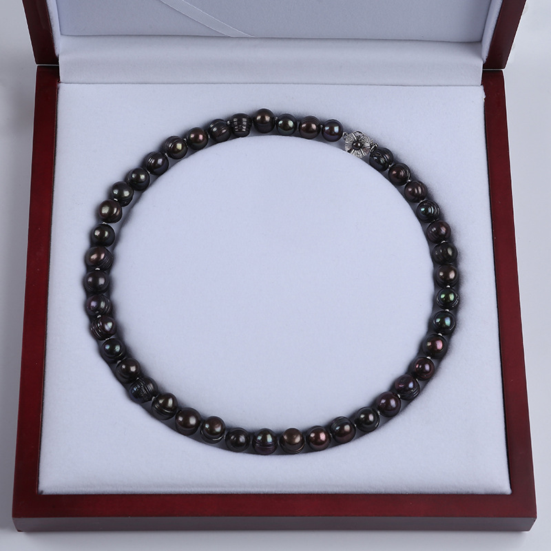 Perlas cultivadas de agua dulce collar, latón cierre magnético, Esférico, natural, sarta sola, Negro, Grado AA, 8-9mm, longitud:16.5 Inch, Vendido por Sarta