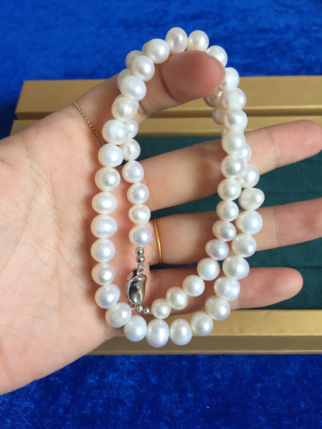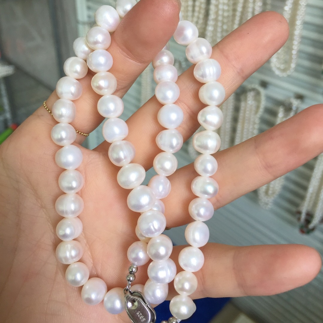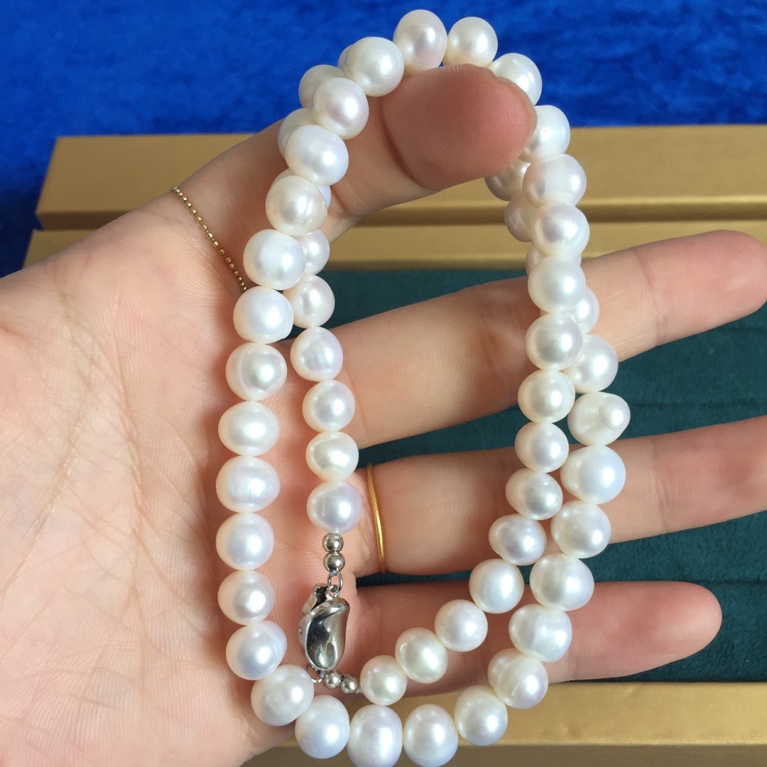 Collar de Perlas Natural de Freshwater, Perlas cultivadas de agua dulce, con aleación de zinc, Ligeramente redondo, para mujer, Blanco, About:7-8MM, longitud:45 cm, Vendido por Sarta