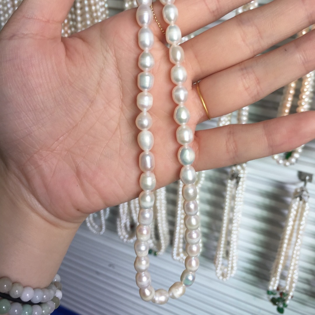 Collar de Perlas Natural de Freshwater, Perlas cultivadas de agua dulce, Patata, Joyería, Blanco, 6-7mm, longitud:45 cm, Vendido por Sarta