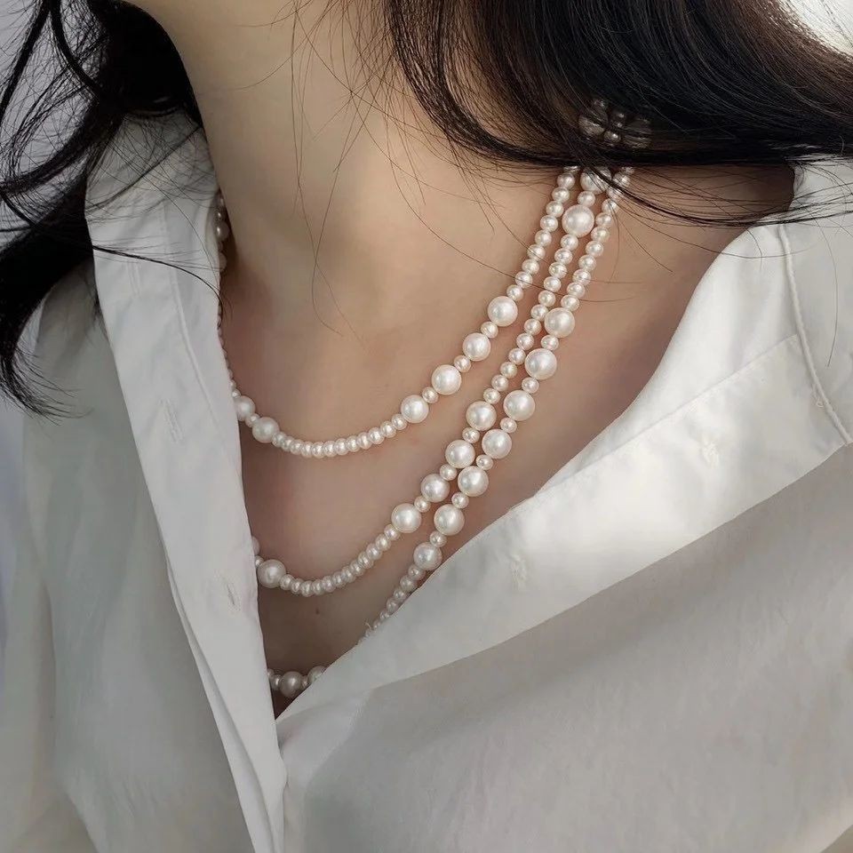 Collar de Perlas Natural de Freshwater, Perlas cultivadas de agua dulce, para mujer, longitud:43 cm, Vendido por UD