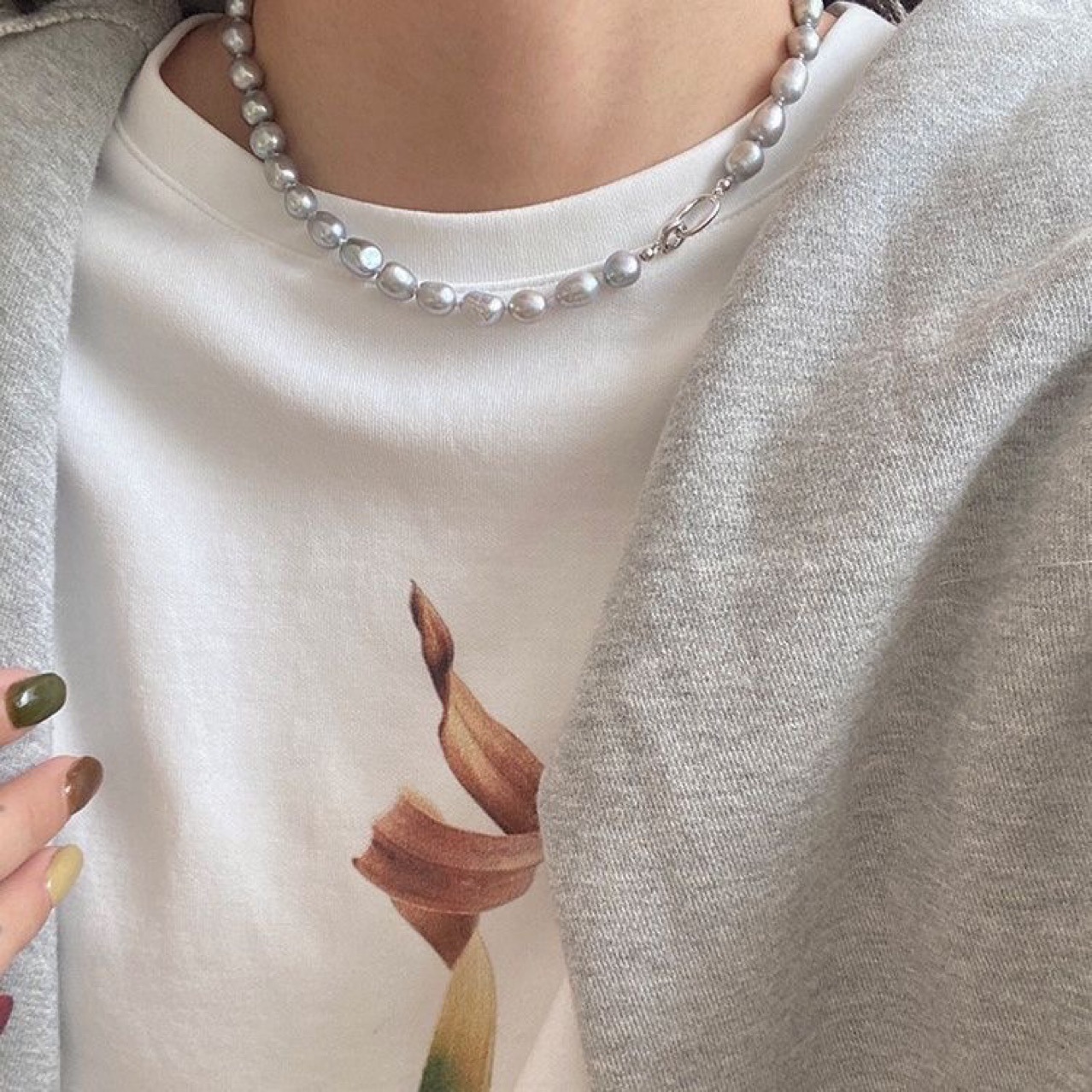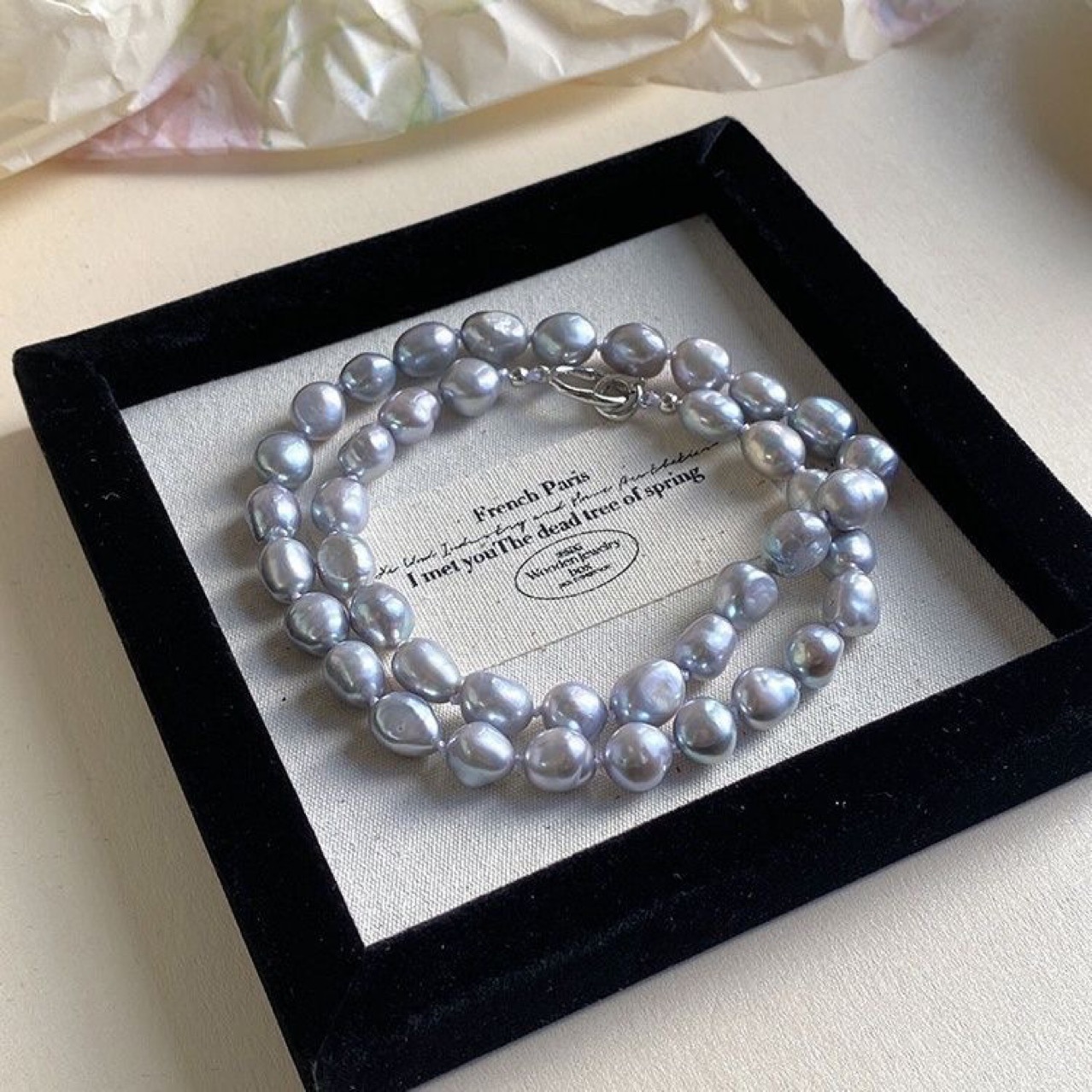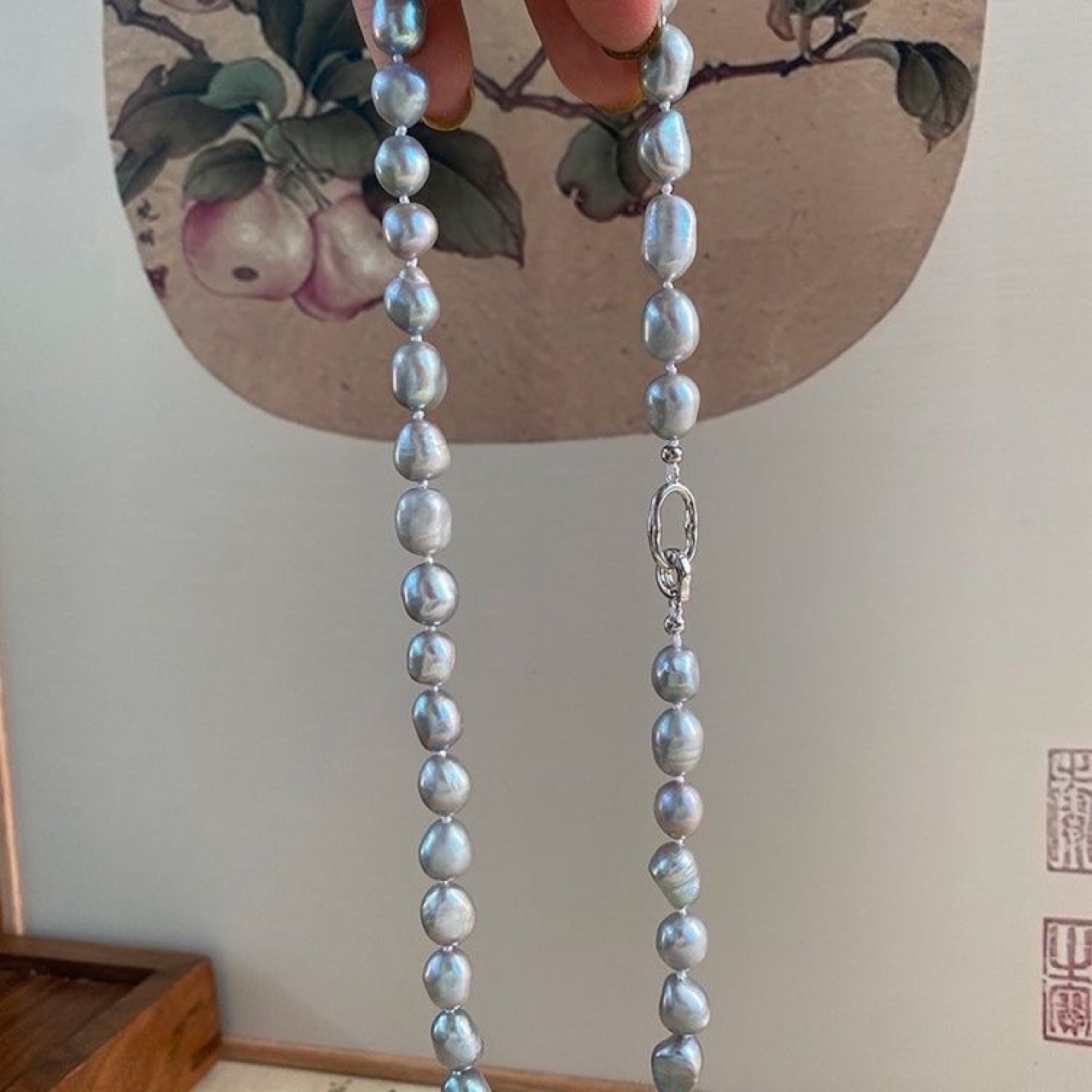 Collar de Perlas Natural de Freshwater, Perlas cultivadas de agua dulce, con aleación de zinc, Barroco, chapado en color dorado, Joyería, gris, 7x8mm, longitud:41-51 cm, Vendido por UD