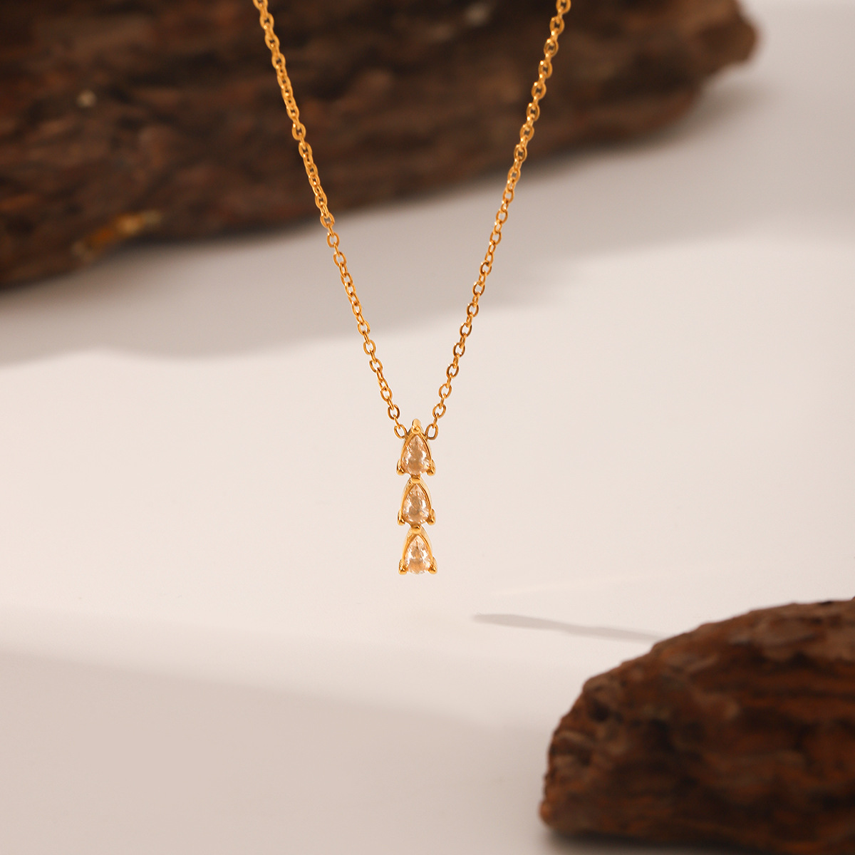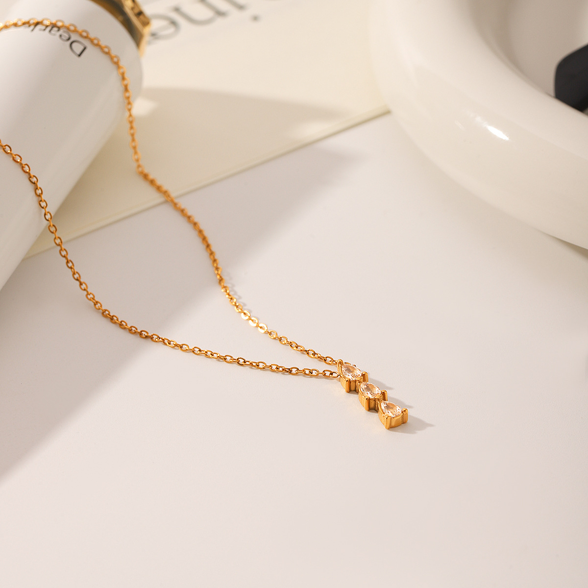 Collar de acero inoxidable Circonita, acero inoxidable 304, con 5cm extender cadena, Joyería & micro arcilla de zirconia cúbica & para mujer, dorado, longitud:41 cm, Vendido por UD