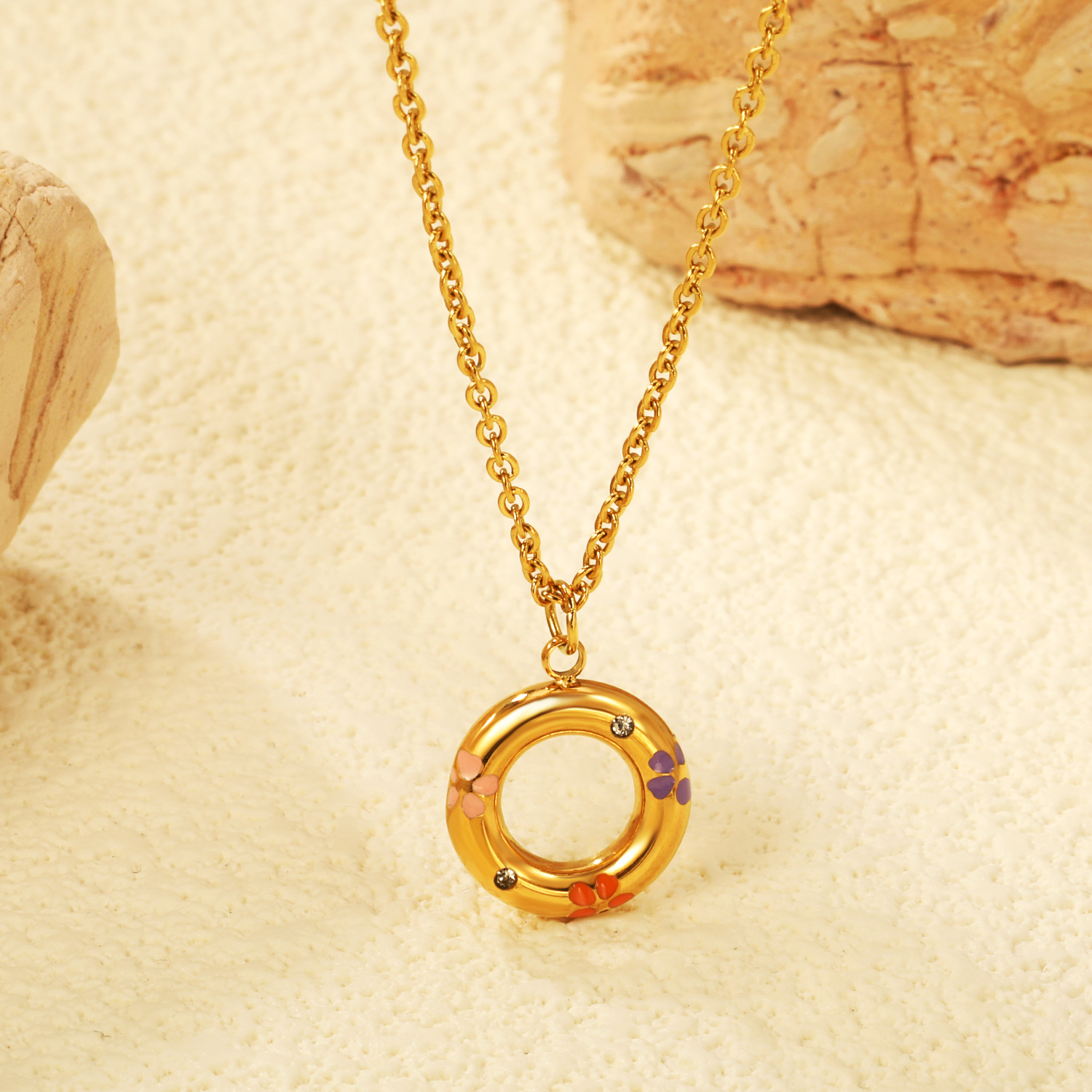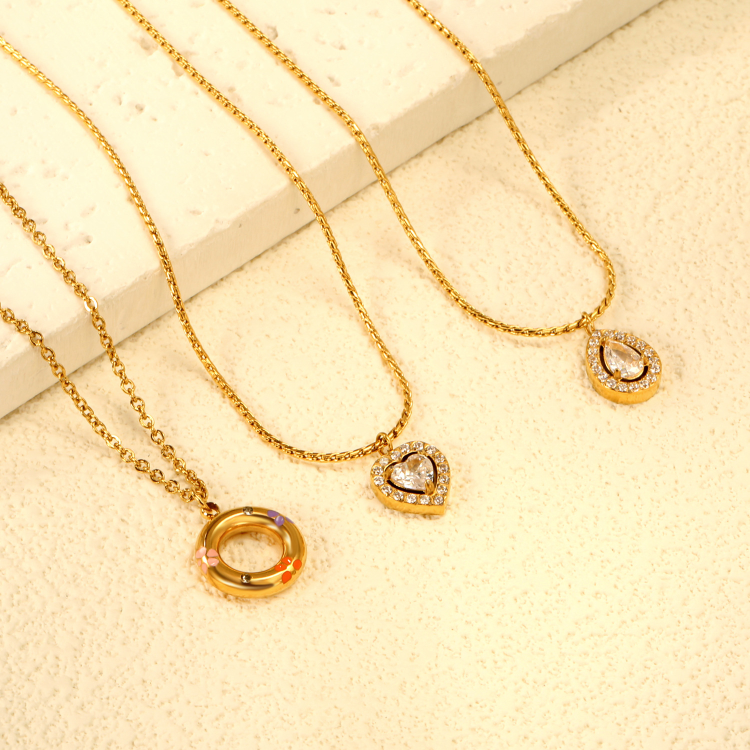 Collar de acero inoxidable Circonita, acero inoxidable 304, con cúbica circonia, Esférico, chapado en color dorado, cadena oval & hueco, 21x24.5mm, 2.5x2mm, longitud:aproximado 18 Inch, Vendido por Sarta