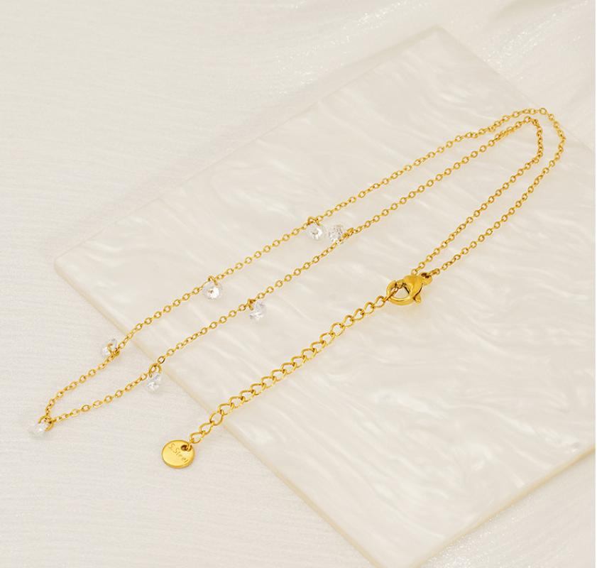 Collar de acero inoxidable Circonita, acero inoxidable 304, con cúbica circonia, con 5cm extender cadena, 18K chapado en oro, Joyería & para mujer, longitud:38 cm, Vendido por UD