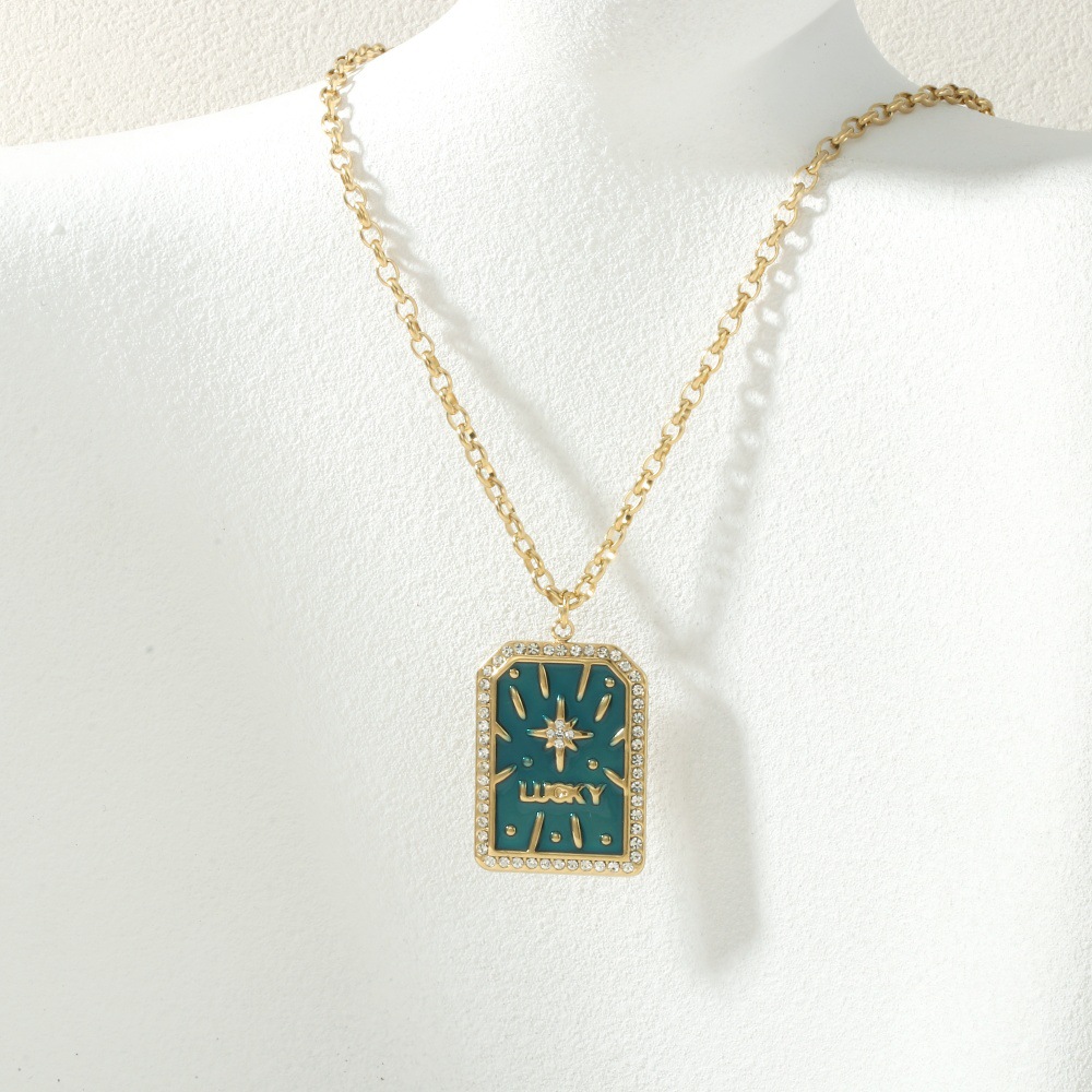 Collar de acero inoxidable Circonita, acero inoxidable 304, chapado en color dorado, Joyería & micro arcilla de zirconia cúbica & esmalte, más colores para la opción, Vendido por UD