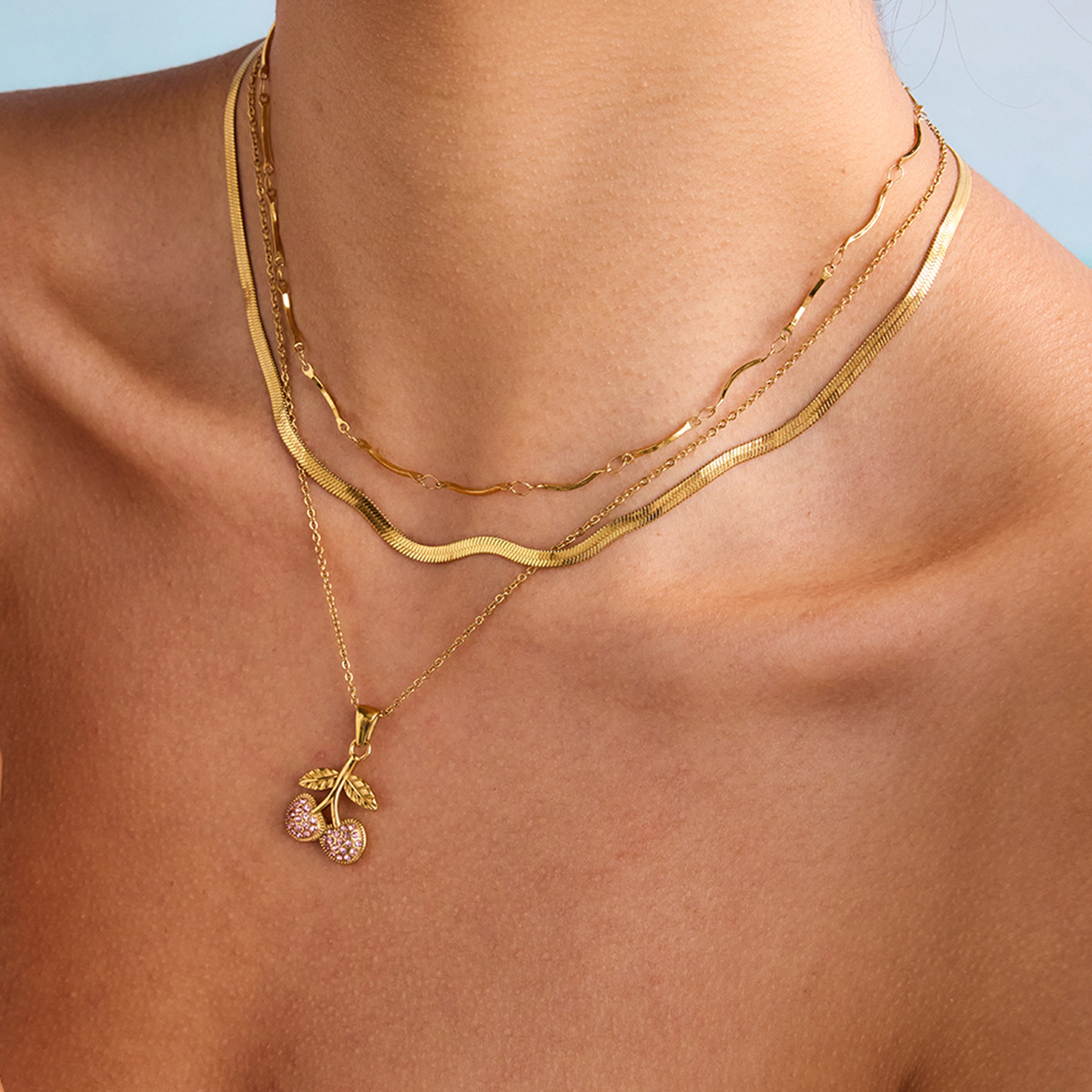 Collar de acero inoxidable Circonita, chapado, cadena oval & con circonia cúbica, más colores para la opción, 6x7x2.5mm, 4.5x7x2mm, 2x3mm, 1mm, longitud:aproximado 16 Inch, Vendido por Sarta