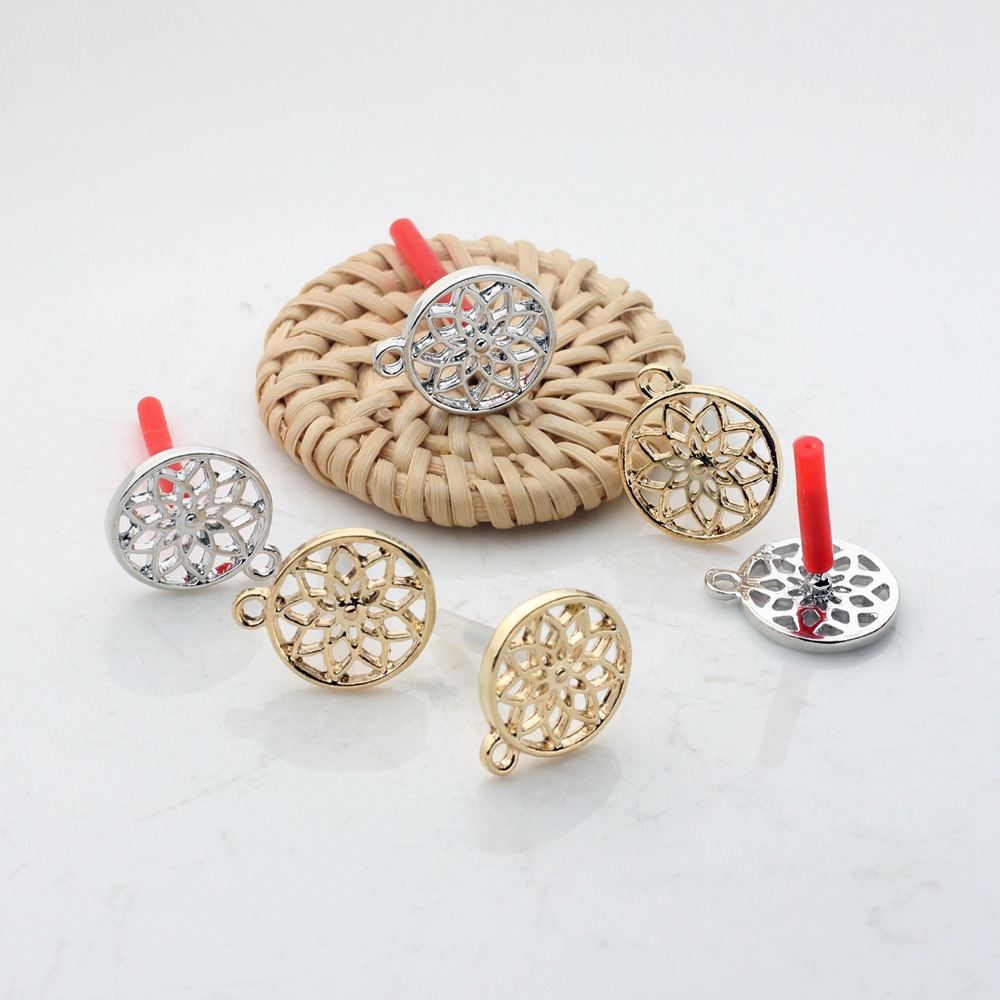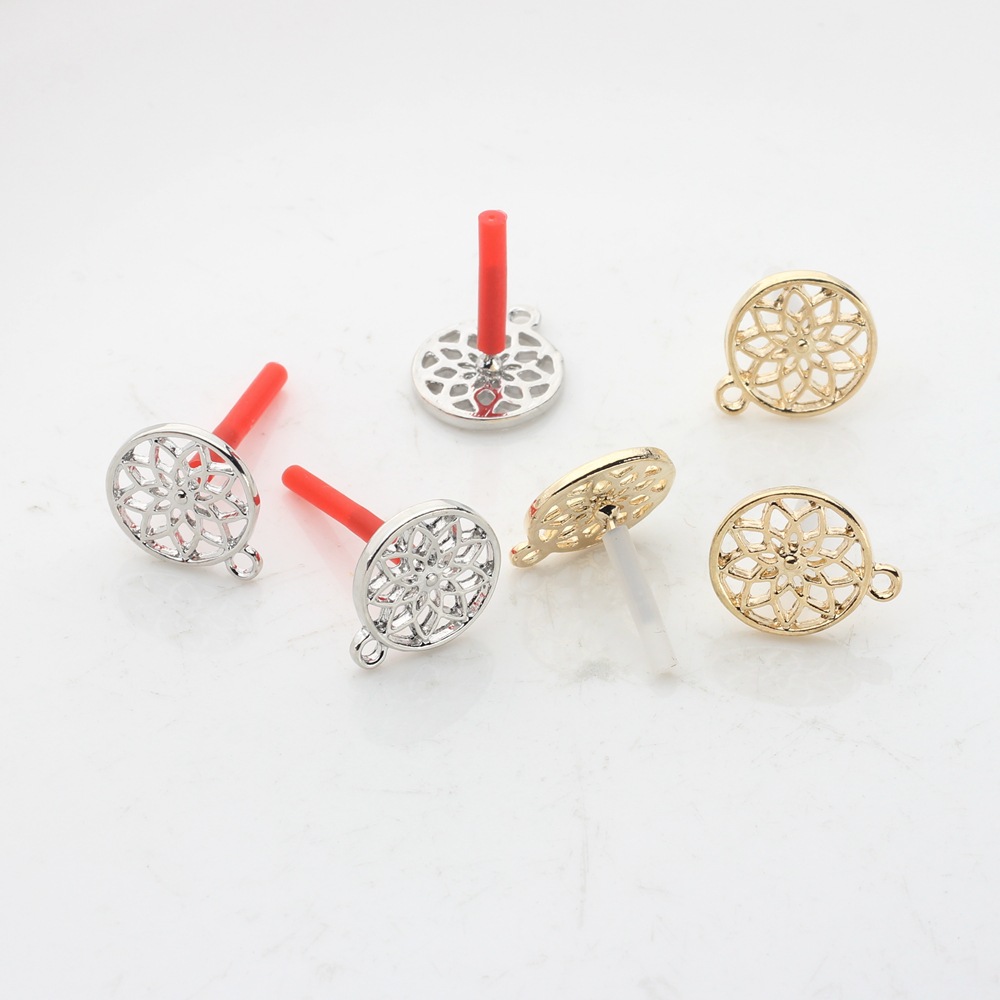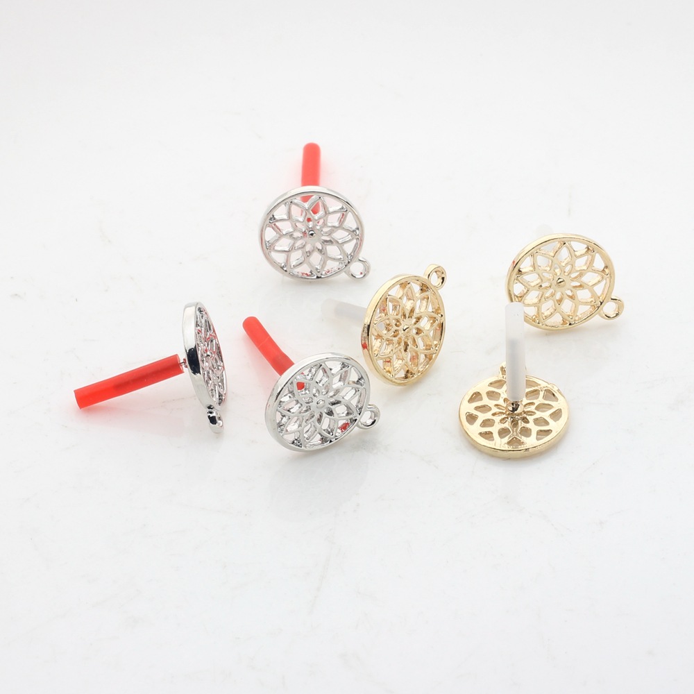 Componente de stud pendiente de aleación de cinc, aleación de zinc, Flor, chapado, Joyería & hueco, más colores para la opción, 100PCs/Bolsa, Vendido por Bolsa