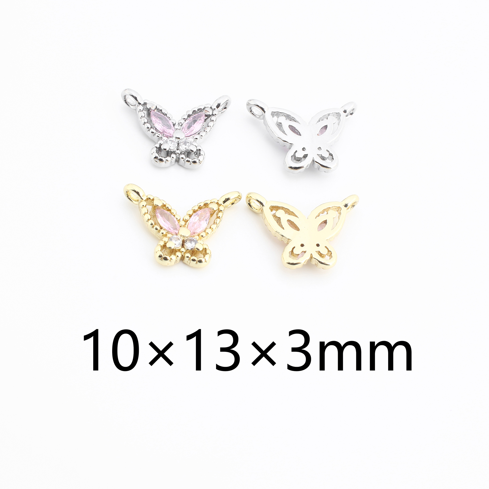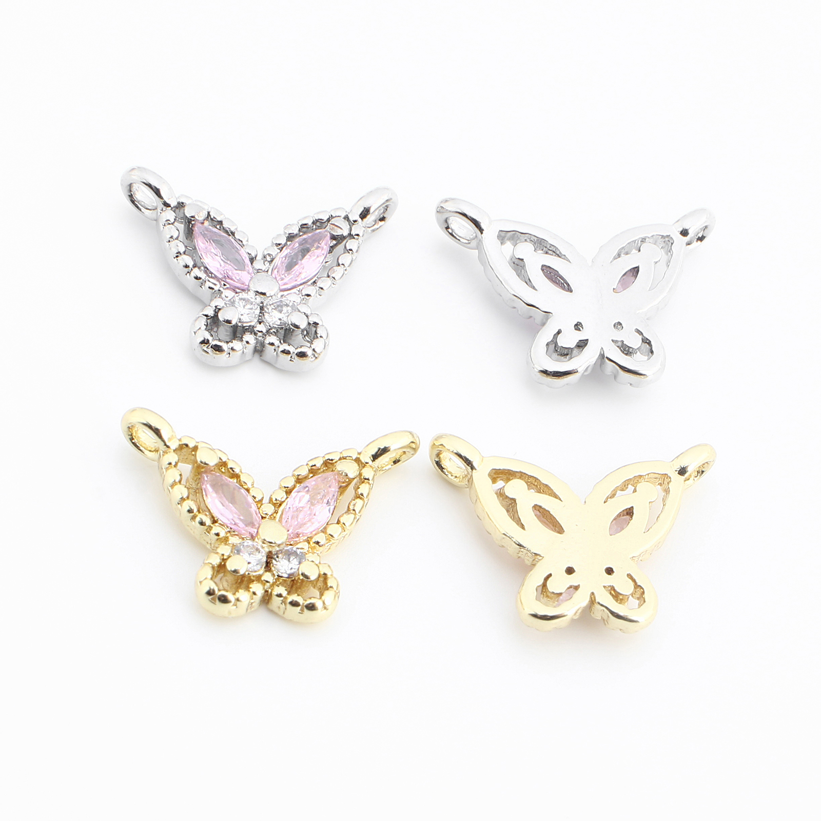 Conector de Micro Pavé de Zirconía Cúbica en Latón, metal, Mariposa, chapado, Bricolaje & micro arcilla de zirconia cúbica, más colores para la opción, 10x13x3mm, Vendido por UD