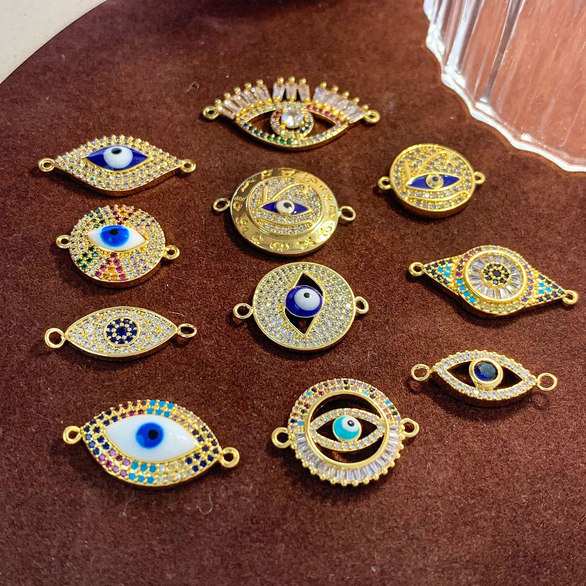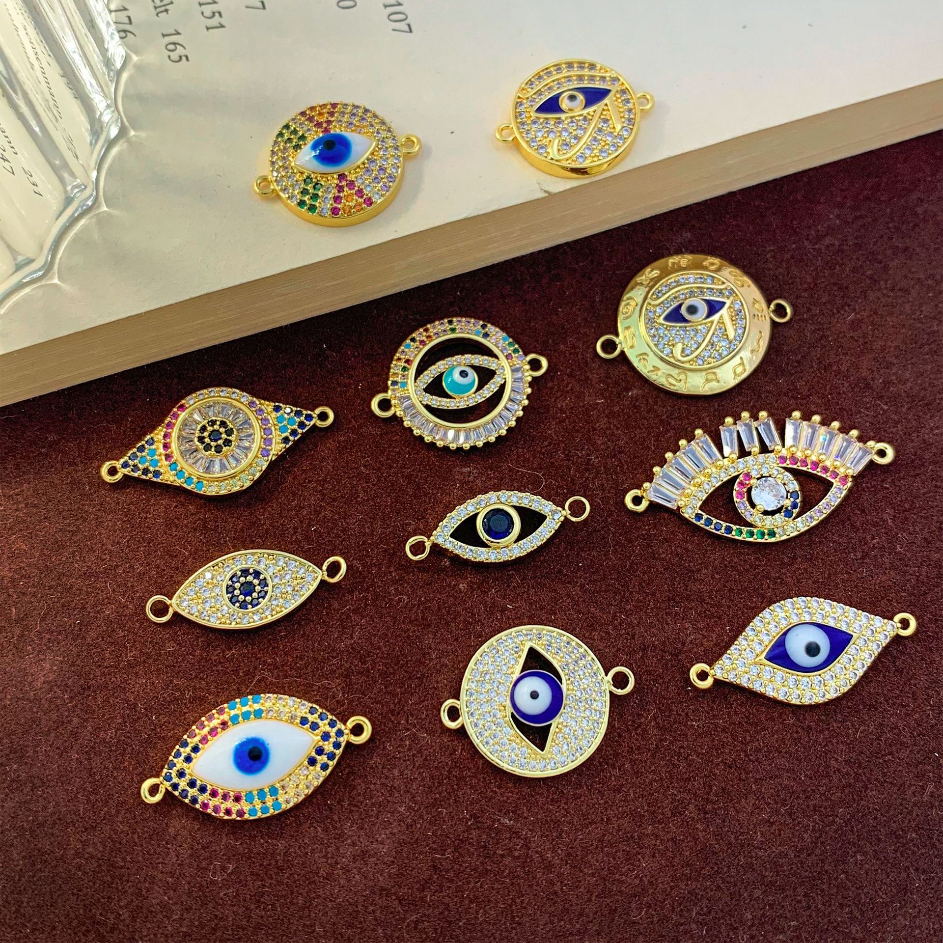 Conector de joyería de mal de ojo, metal, chapado, Bricolaje & micro arcilla de zirconia cúbica & esmalte, más colores para la opción, 9.4x24x2mm, Vendido por UD