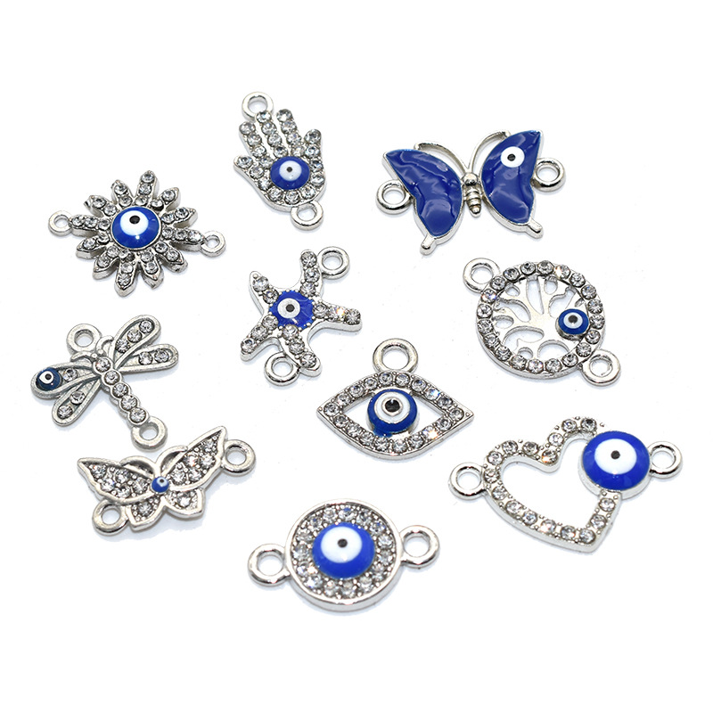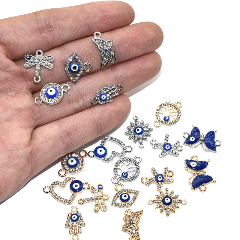 Conector de joyería de mal de ojo, aleación de zinc, chapado, Bricolaje & diferentes estilos para la opción & esmalte & con diamantes de imitación, Vendido por UD