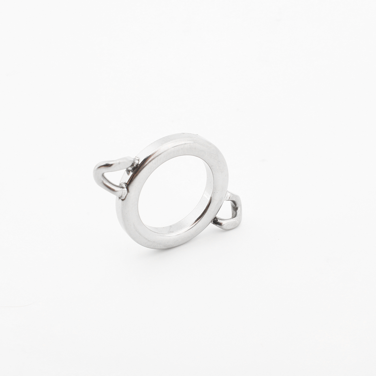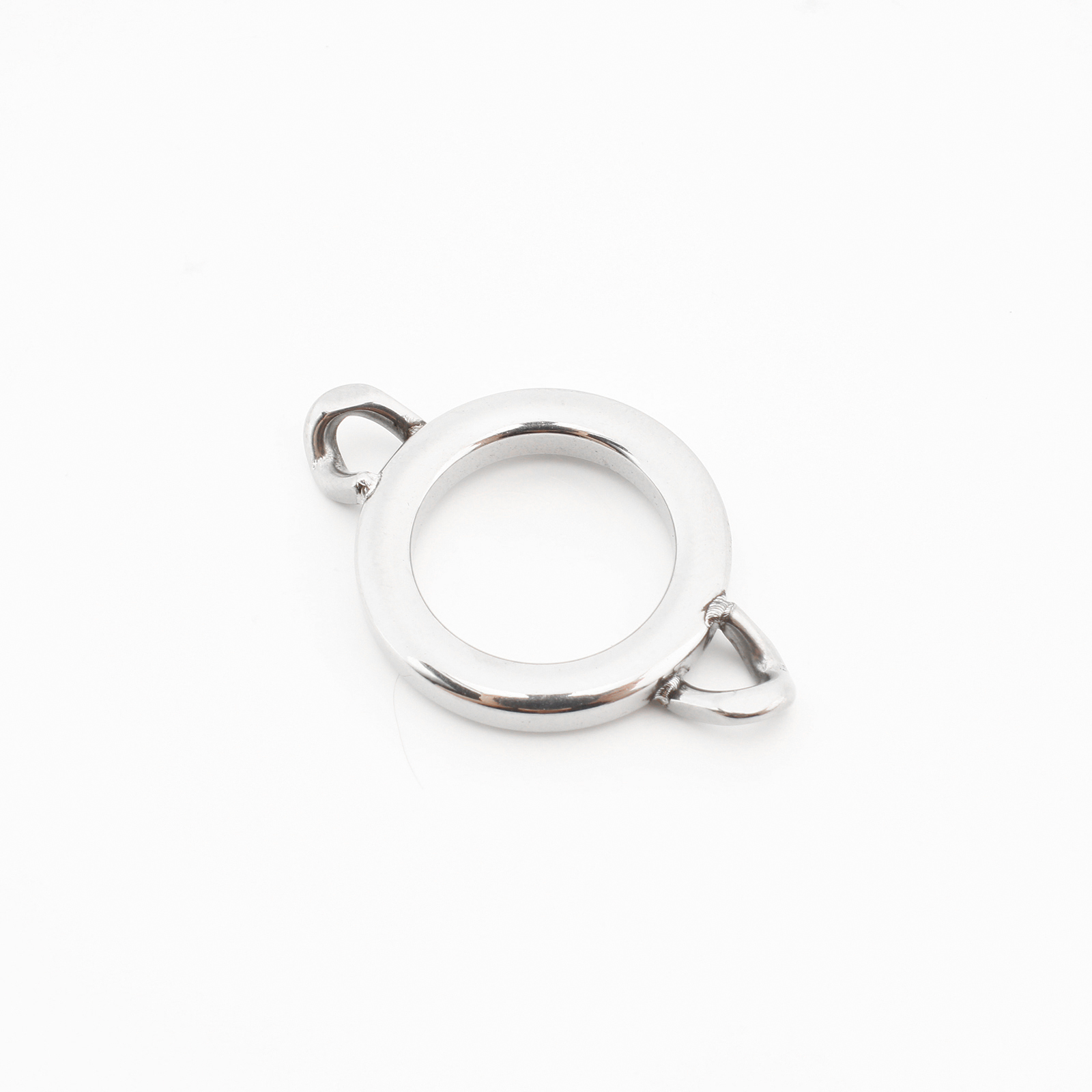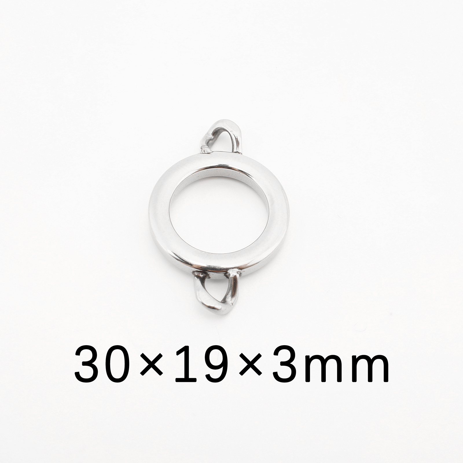 Conector encanto de acero inoxidable, Redondo aplanado, 1/1 aro, color original, 25x30mm, agujero:aproximado 1.5mm, 10PCs/Bolsa, Vendido por Bolsa
